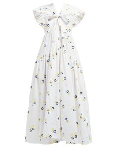 cecilie-bahnsen-white-multi-Ricca-Bow-trim-Embroidered-Cotton-blend-Dress
