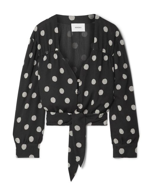 nanushka-black-Amulet-Polka-dot-Chiffon-Blouse