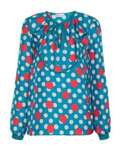 red-valentino-Teal-Layered-Polka-dot-Silk-Satin-twill-Blouse
