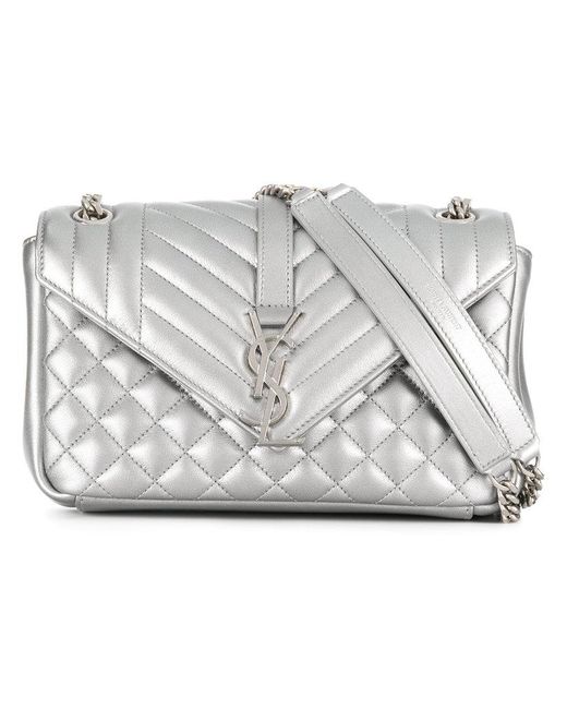 saint-laurent-Metallic-Medium-Silver-Quilted-Monogram-Bag