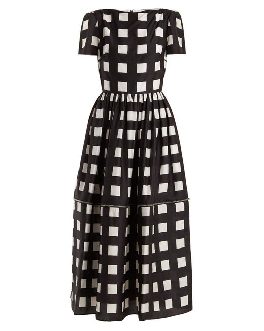 christopher-kane-black-white-Zip-Hem-Square-Print-Silk-Dress
