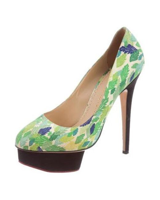 charlotte-olympia-Green-Canvas-Platform-Pumps