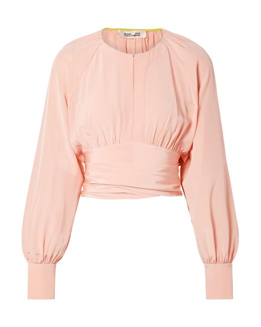 diane-von-furstenberg-pastel-pink-Gathered-Cropped-Silk-Wrap-Blouse