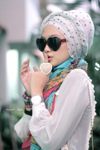 RECREATING HIJAB BARBIE FASHION: NEUTRAL HIJAB WITH A COLORFUL PRINTED SCARF AND DETAILED PIECES OF JEWELRY.