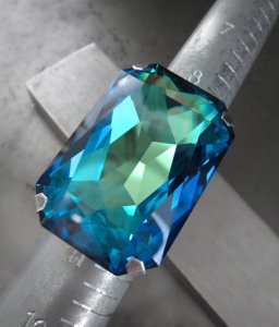 RECREATING PARIS FASHION: MIROSLAVA DUMA TRENCH COAT AND DENIM JEANS. MARBLE BLUE SAPHIRE AURORA BOREALIS DIAMONDS.