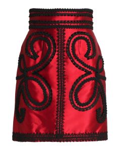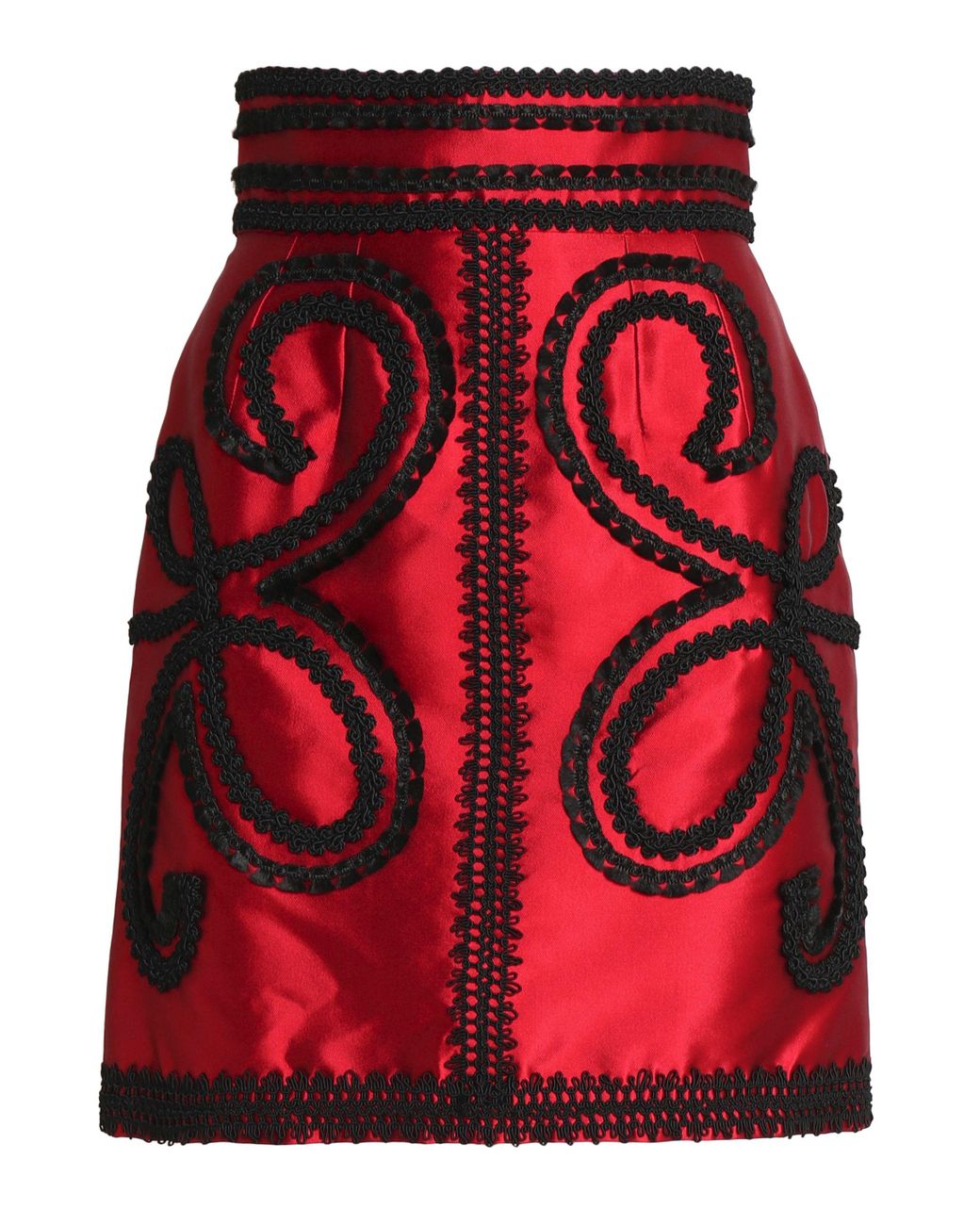 dolce-gabbana-Crimson-Woman-Appliqued-Silk-blend-Satin-twill-Mini-Skirt-Crimson