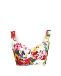 dolce-gabbana-white-multi-Rose-And-Hydrangea-Print-Cotton-Blend-Crop-Top