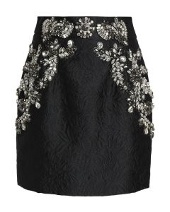 dolce-gabbana-Black-Woman-Crystal-embellished-Matelasse-Mini-Skirt-Black
