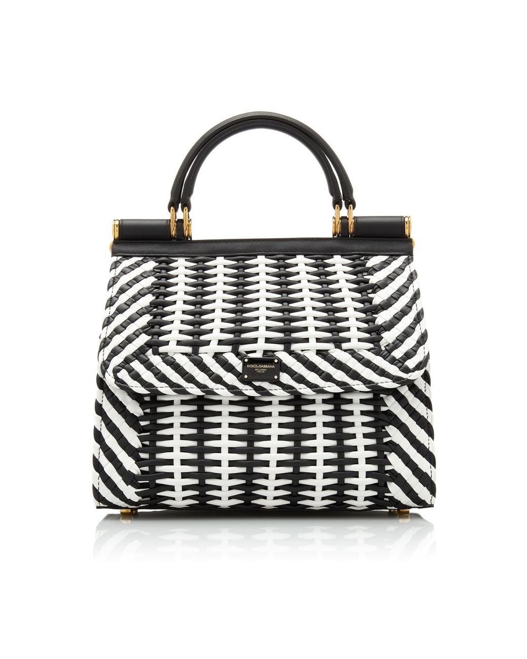 dolce-gabbana-blackwhite-Intreccio-Leather-Top-Handle-Bag