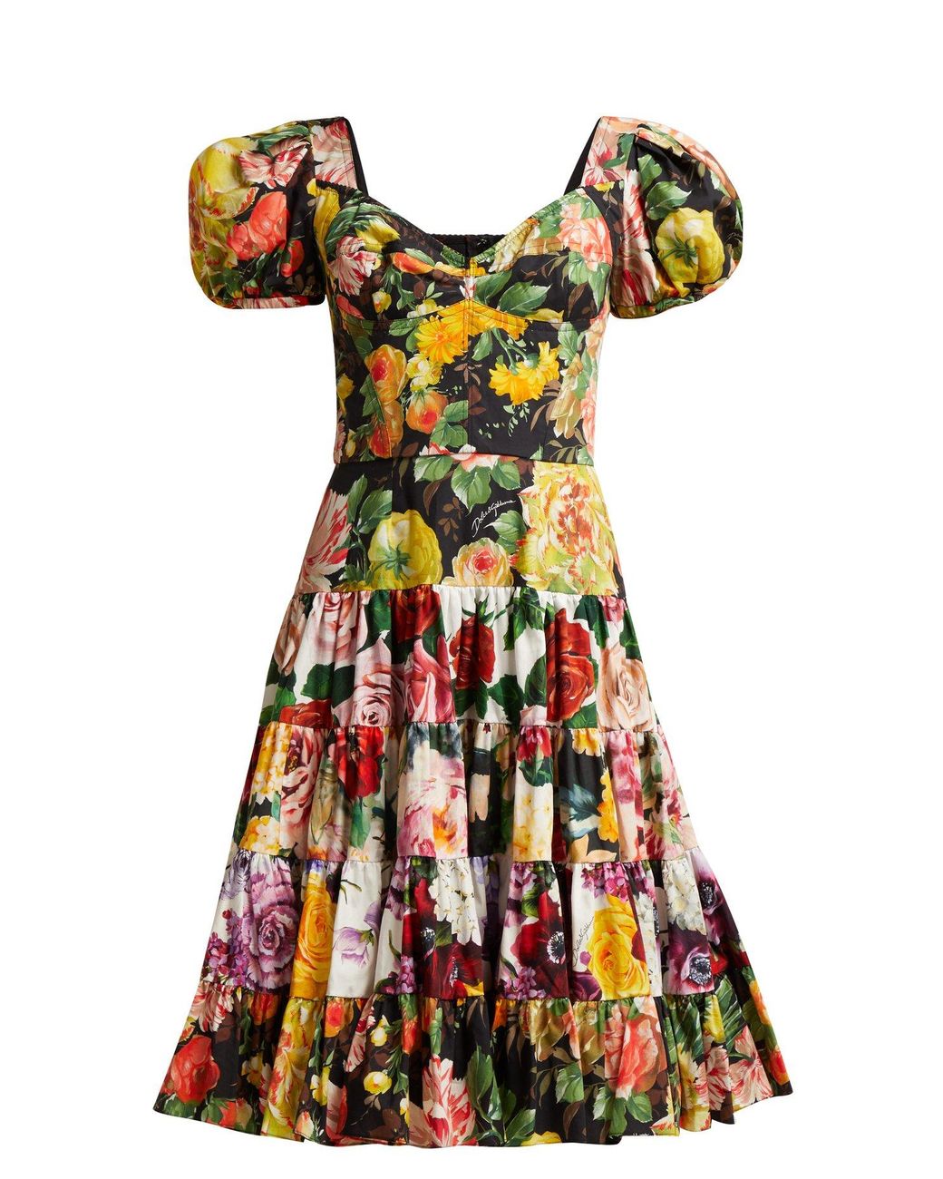 dolce-gabbana-black-multi-Floral-Print-Tiered-Cotton-Blend-Dress