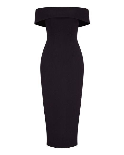 safiyaa-black-Orita-Fitted-Heavy-Crepe-Midi-Dress