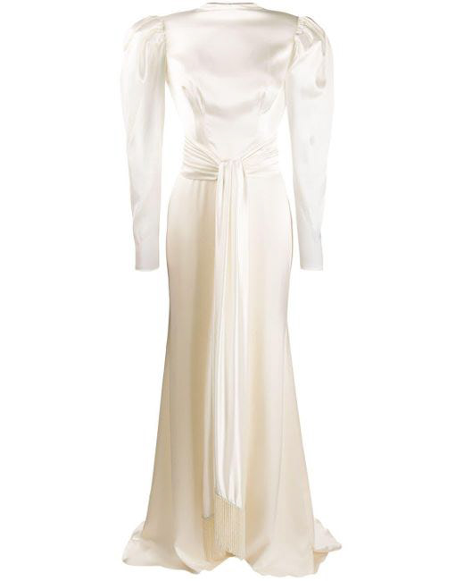 RECREATING PRINCESS DIANA’S FASHION: DRAPED PEARL NECKLACES AND A WHITE DRESS.