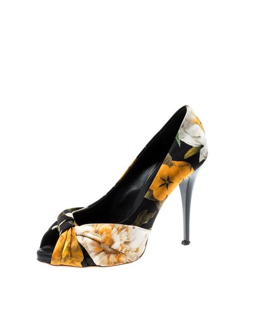 giuseppe-zanotti-Yellow-Printed-Satin-Bow-Detail-Peep-Toe-Pumps-Size-38