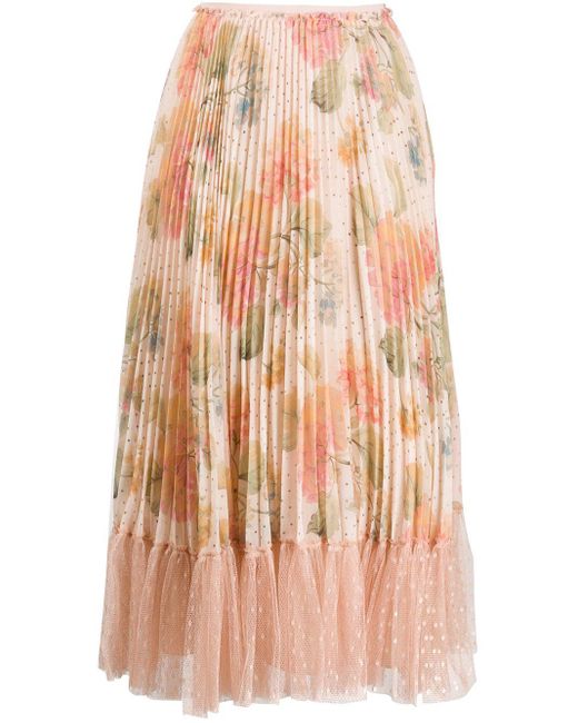 red-valentino-NEUTRALS-Micro-pleated-Floral-Skirt