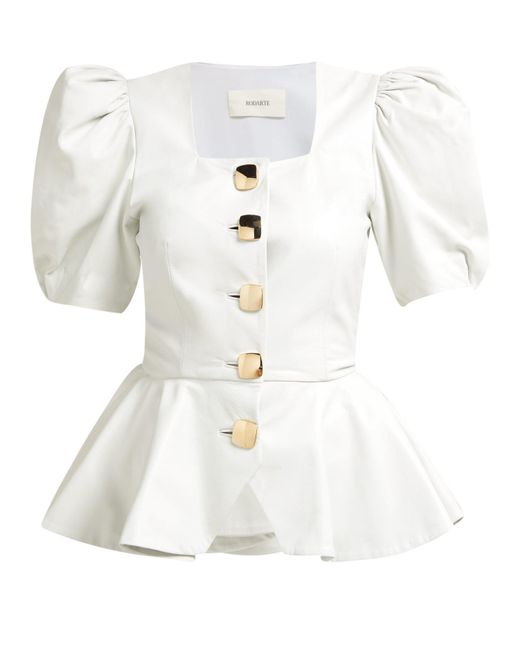 rodarte-white-gold-Square-neck-Puffed-sleeve-Leather-Blouse