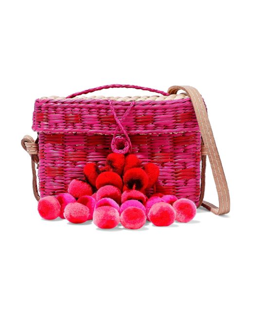 nannacay-designer-Fuchsia-Baby-Roge-Pompom-embellished-Woven-Raffia-Shoulder-Bag-Fuchsia