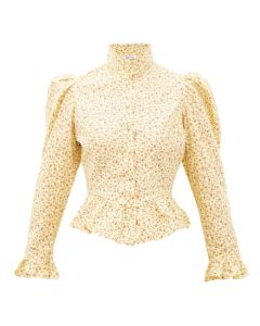 batsheva-designer-yellow-Grace-High-neck-Ruffled-Cotton-Blouse