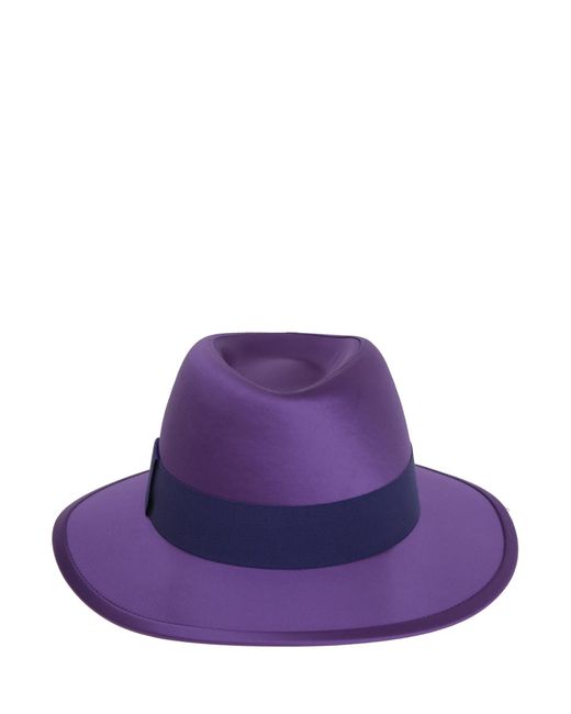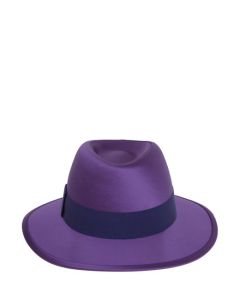saint-laurent-purple-Cappello-viola-Fedora-in-lana-con-nastro-in-grosgrain-di-colore-blu-e-profilo-in-satin