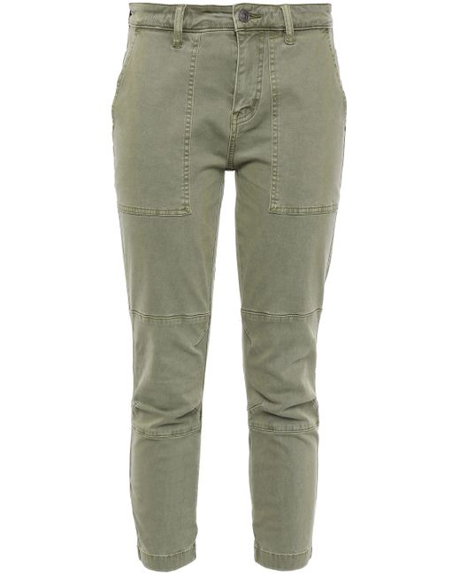 currentelliott-Sage-green-Cropped-Lace-up-Cotton-blend-Twill-Slim-leg-Pants-Sage-Green
