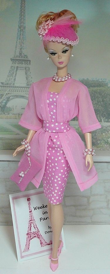 THIS IS ONE OF MY FAVORITE, SILK STONE BARBIE VINTAGE LOOKS. NOW ONLY IS PINK, MY FAVORITE COLOR. POLKA DOT IS MY FAVORITE PRINT, MY OBSESSION, WITH PEARLS, ARE A GIRL’S BEST FRIEND. I LOVE PEARLS! VINTAGE CHUNKY JEWELRY! AND MOST OF ALL I LOVE THE FACT! YOU CAN HIJ’SHABI ANYTHING! MAKE IT MODEST! AND MORE CHIC! THAN THE ORIGINAL! THE BARBIE IS PICTURED WITH A VINTAGE PINK FEATHER HAT, STUD PEARL EARRINGS, BARBIE PINK LIPSTICK, A BARBIE PINK SHEER BLOUSE. A PINK POLKA DOT DRESS, TIED WITH A PINK POLKA DOT BELT, BARBIE PINK MARY JANE PUMPS, A BARBIE- PINK PEARL EMBELLISHED CLUTCH, WITH PINK PEARL CRYSTAL BRACELETS.