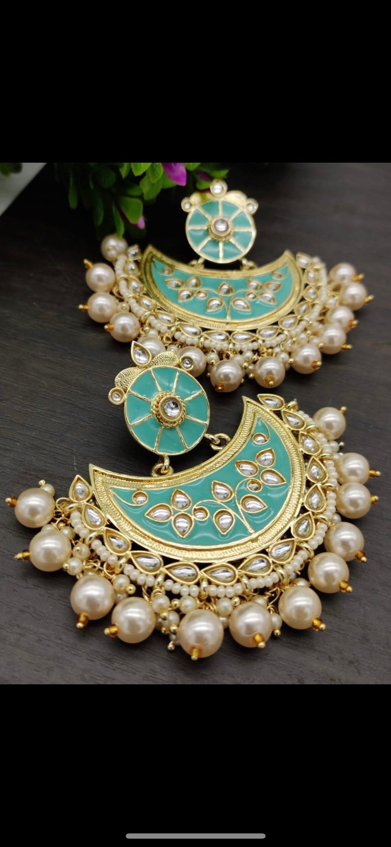 FOR MY RECREATION, OF THIS LOOK, I PAIRED A COOL SOFT-MINT BLUE HIJAB, WITH ETSY JEWELAFFAIRPOP, SOFT MINT-BLUE MEENAKARI KUNDAN INDIAN EARRINGS THAT I PAIRED WITH ETSY RETAILJEWELLERY BLUE INDIAN SILK BANGLES, WITH A TURQUOISE BLUE EMBROIDERED PRINCESS JASMINE LEHENGA, PASTEL BLUE TIGHTS UNDERNEATH AND BLUE SLINGBACK PUMPS. FOR THE ACCESSORIES I PAIRED NUDE NATURAL TONE PINK LIPGLOSS WITH BRIGHT SOFT BLUE MODEST NAILS, AND A BRIGHT TURQUOISE BLUE HANDBAG.