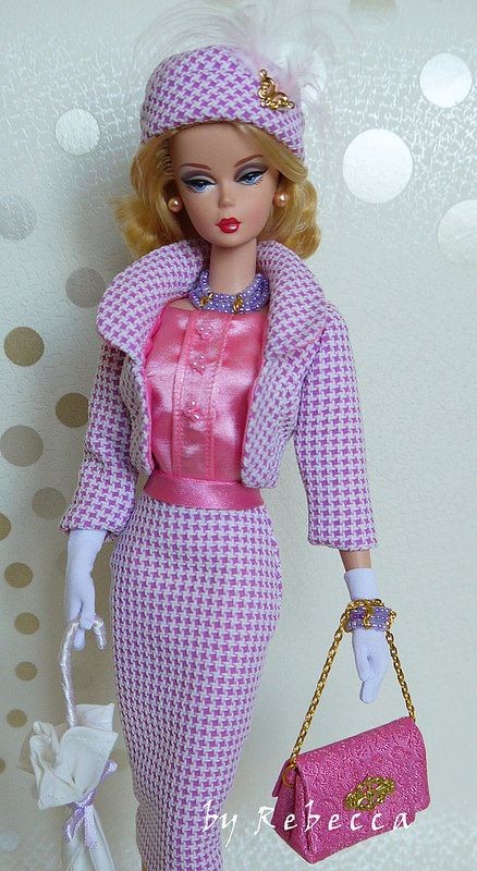 THE VINTAGE SILKSTONE BARBIE, IS PICTURED WEARING, A VINTAGE PURPLE HOUNDSTOOTH HAT, WITH A GOLD EMBELLISHED BROOCH ON IT, PAIRED WITH A MATCHING PURPLE, HOUNDSTOOTH TWEED, HOUNDSTOOTH BLAZER, PAIRED WITH A PINK SILK BLOUSE, TUCKED INTO THE MATCHING PURPLE HOUNDSTOOTH SKIRT. THE OUTFIT, IS ACCESSORIZED, WITH SHORT WHITE GLOVES, PURPLE BEADED BRACELETS, ON ONE HAND. AND A MAGENTAH VINTAGE BROCADE CLUTCH. I RECREATED THIS LOOK, AND I HAD SO MUCH FUN, JUST GOING FOR IT. SHOWING YOU THAT HIJABS, ARE SUCH A STYLISH ADDITION, TO ANY OUTFIT. I PAIRED A LAVENDER, BARBIE-PURPLE HIJAB, WITH ETSY PEPPERMINTTWISTCA, BLUE VINTAGE CLUSTER EARRINGS, WITH A BARBIE-PINK NATURAL-TONE LIPGLOSS. THAT I PAIRED WITH A BARBIE PINKURPULAH (PINK AND PURPLE) TWEED HOUNDSTOOTH BLAZER, WITH BUTTON EMBELLISHEMENTS, PAIRED OPEN, WITH A PINK FLORAL, CROPPED BLOUSE, PAIRED WITH A PURPLE HOUNDSTOOTH TWEED, BUTTON EMBELLISHED SKIRT, INDIGO PURPLE TIGHTS, AND BRIGHT PEACOCK MAGENTA SILK PUMPS. FOR THE ACCESSORIES, I PAIRED A IRIDESCENT METALLIC CLUTCH, WITH BRIGHT WATER BLUE NAILS. FOR THE JEWELRY, ON ONE HAND, I PAIRED AN ETSY (UNSPECIFIED DETAILS OF DESIGNER, CREDIT TO THE ETSY JEWELRY DESIGNER, FOR THIS BEAUTIFUL PIECE) TURQUOISE-BLUE, POLISHED MARBLED STONE STACK, OF BRACELETS . ON THE OTHER HAND, I PAIRED, AN ETSY SAHARAJEWELLERYSTORE, BRIGHT TURQUOISE BLUE AFGHAN RING. TARA 101: WHICH WILL REALLY BRING OUT THE LAVENDER, AND BLUE HUES TOGETHER, SO THAT THEY FLOW IN HARMONY, AND COLOR TOGETHER, IN CONTRASTING, BRIGHTER COMPARISON REPRESENTATION OF EVERY DETAIL OF THE OUTFIT.