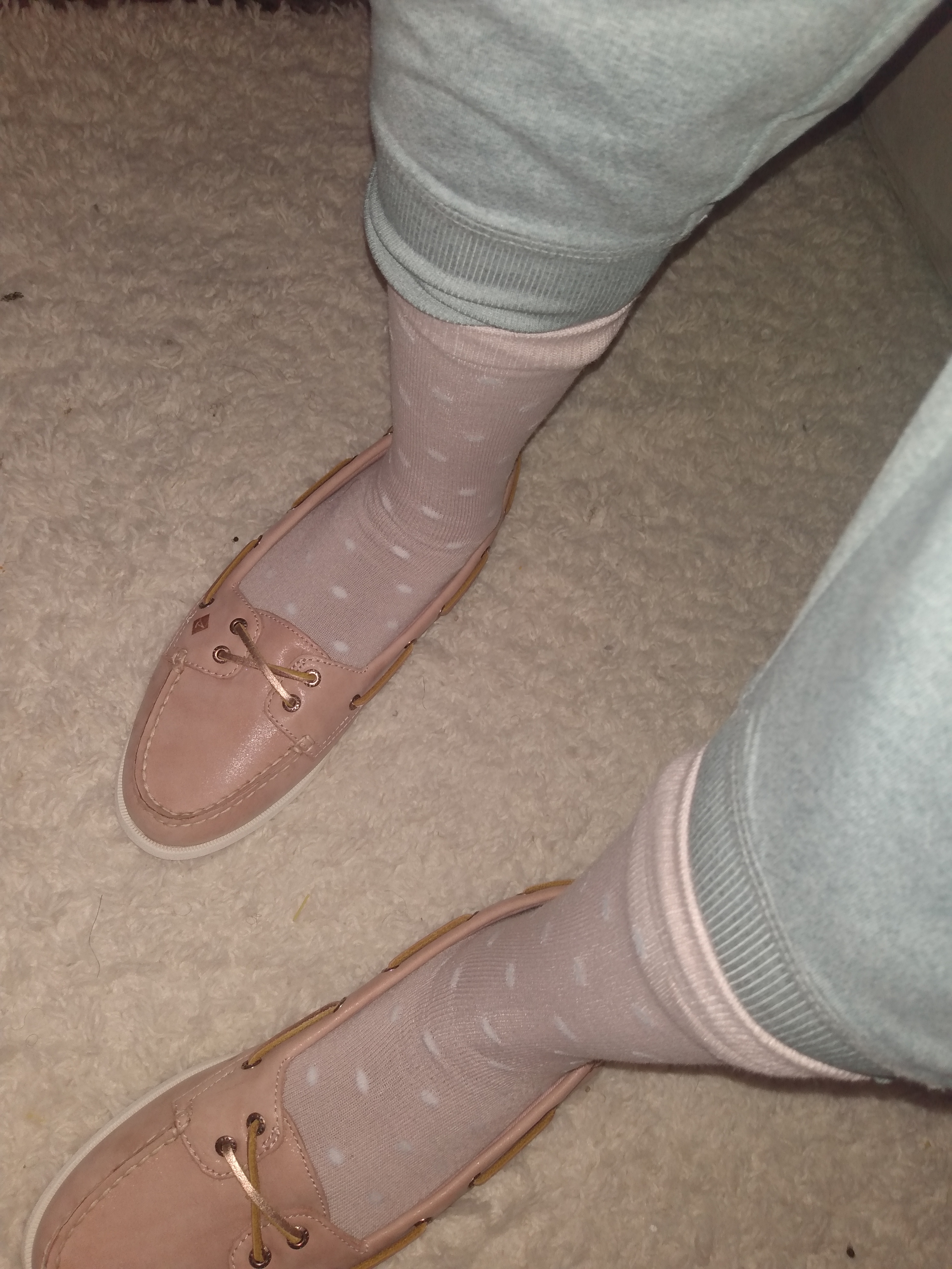 WE MUST KNOW THAT THE CLASSIC SHOES, THAT EVERY GAL NEEDS IN HER CLOSET, IS A CLASSY STYLE LOAFER, SUCH AS SPERRYS, OR MOCCASSINS, AND A CLASSIC STYLE FLAT, OR SLIPPER, SUCH AS TOMS, MARYJANES, OR OXFORDS. ITS JUST A MUST, THESE CLASSIC SHOES, GO WITH JUST ABOUT EVERYTHING, YOU TRY TO ATTEMPT FASHIONABLY. SO HERE I PAIRED, A VERY DETAILED SOCK, CAPPACHINO BROWN, POLKA DOT PRINT SOCKS, WITH MINT JOGGERS, AND MY METALLIC PINK SPERRYS. THAT I PAIRED, WITH A V NECK WHITE T, DRAPED CREAMY PEARLS, A PEARL FLOWER CUFF BRACELET, WITH A CHUNKY PEARL BRACELET, MATCHING GLASSES, AND LAST BUTG NOT LEAST, THE MOST DETAILED PIECE, I NOTICED FIRST, BESIDES THE SPERRYS, IS THE BLUE SILK ASIAN PRINT SCARF, IM WEARING AS A HEABAND, AND A BOLD HOT PINK LIP, IT REALLY BRINGS ALL OF THE COLORS, IN HERE TOGETHER, AS ONE. DOWN TO EVERY COLOR SHIFT, SCHEME, TO EVERY DETAILED PIECE, OF JEWELRY. TARA 101: WHEN PLAYING WITH YOUR SPERRY’S, YOU CAN EITHER, DO A COLOR SCHEME, WITH YOUR SPERRY’S, OR YOU CAN BASE YOU HEAD SCARF, TO HAVE AT LEAST ONE, OF THE COLORS, IN THE HEADWRAP, HIJAB, HEADSCARF, AND HEADBAND. GOT IT? YOU GOT THIS!