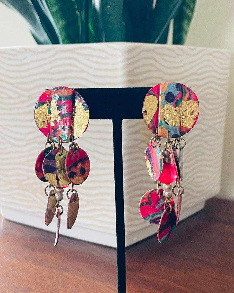 THIS OUTFIT NIKKA’RA’RIANARAH, IS WEARING GIVES ME, DOLCE AND GABBANA VIBES, ITALY MEETS BARBIE VIBES. SIMPLY BECAUSE, OF THE FLORAL PRINT, MIXING WITH THE LEOPARD PRINT, AND THEN ACCESSORIZING, HOW SHE DEFINES SEEING HERSELF AS BARBIE, WITH THE BLACK LONG BOB, WITH THE STREAK OF PINK, AND BLACK MATCHING NAILS, WITH A BARBIE PINK LIP. I RECREATED THE LOOK, I PAIRED A BLACK EMBELLISHED TURBAN, WITH BLONDE OMBRE PINK HAIR, BARBIE PINK LIPSTICK, WITH ETSY THEBELLSOCIETY, VINTAGE MULTI-COLOR, MOSAIC PRINT EARRINGS, PAIRED WITH A FARM RIO, FLORAL PRINT CROP TOP, THAT WILL BE WORN UNDERNEATH, A BLACK PATENT LEATHER BRA TOP, PAIRED WITH TOM FORD, LEOPARD PRINT SHORTS, BLACK TIGHTS, AND BROWN PATENT PLATFORM MARY JANES. FOR THE REST, OF THE JEWELRY, AND ACCESSORIES, I PAIRED MY BARBIE HOT-PINK NAILS, WITH A BLACK YSL HANDBAG. I PAIRED ETSY HOOKANDKNOBDESIGN BROWN STONE AND GEMSTONE BRACELETS ON ONE HAND. AND ON THE OTHER HAND, I PAIRED ETSY HOOKANDKNOBDESIGN PINK STONE STACKED BRACELETS.