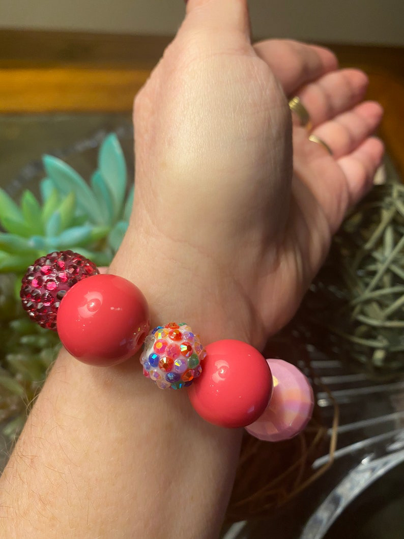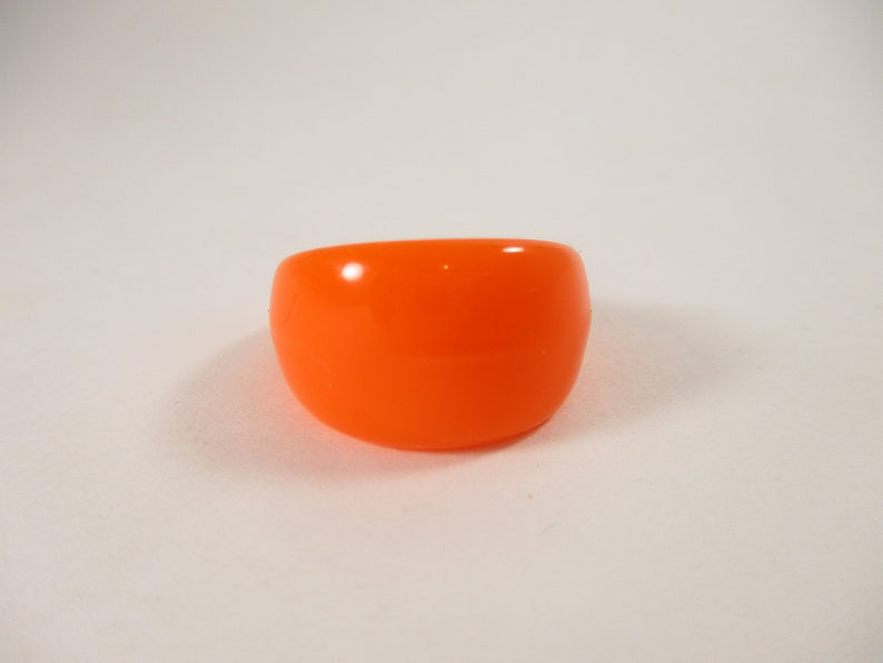 FOR THE JEWELRY, I WANTED MORE ORANGE, THAN JUST WHAT I WAS GETTING, FROM THE EARRINGS, AND THE BELT. SO I PAIRED, ETSY LADYBUMBLEVINTAGE, VINTAGE RETRO ORANGE RING, ON ONE HAND, WITH ETSY KIMBERLYSKREATIVITY, BARBIE-PINK, AND ORANGE, CRYSTAL, CHUNKY BRACELET.