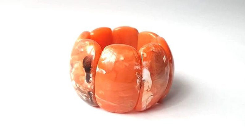 ON THE OTHER HAND, I PAIRED ETSY KOUTUREE, ORANGE CHUNKY, MARBLE- STONE RING, WITH A ETSY IANINADESIGN, ORANGE STONE CUFF BRACELET.