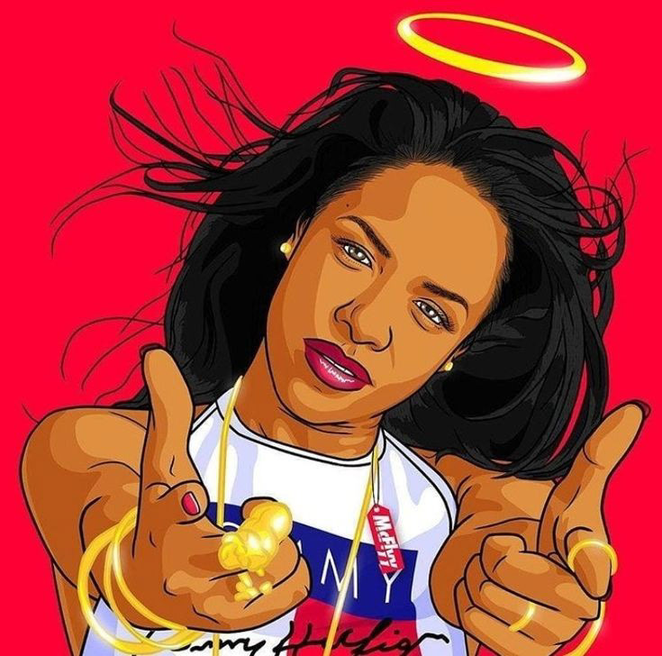 THIS HAS TO BE, MY FAVORITE PAINTINGS, AND FAN ART, OF ALI’YAH’ANA’DAHARA’NAHKA. IT EMBODIES, WHO SHE IS AS AN ANGELIC BEING, BELONGING TO GOD. I LOVE HOW SHE IS PORTRAYED, IN THIS MAGNIFICENT PIECE, OF ARTWORK. I LOVE THE HALO, AROUND HER HEAD, TO ME IT SIGNIFIES: SWEETNESS, KINDNESS, THE BEAUTY, OF HUMBILITY, THE BEAUTY, OF NOT JUST BEING BEAUTIFUL, ON THE OUTSIDE, BUT ON THE INSIDE. I LOVE THAT HER SIGNATURE, TOMMY HILFIGER REPRESENTATION, IS PAINTED IN THIS PHOTO. THE RED AND BLUE, REPRESENTS THE CULTURE OF HOMAGE, TO TWO SIDES. BOTH SIDES, BRINGING THE TOGETHERNESS, AS ONE. OH AND I ALSO LOVE, THE GOLD JEWELRY. THERE SOMETHING, OF SUCH ROYALTY, ABOUT IT. AND IT MAKES YOU THINK, OF GOD. IT MAKES YOU THINK OF STAIRS, OF GOLD, LEADING UP TO HEAVEN, AND STAIR-STEPS, OF A PLATFORM, LEADING UP TO GOD’S THRONE. WHERE HE SITS, WITH MANY ANGELS, AMONGST HIM. INCLUDING THE SPIRIT OF AALIYAH. SO I HAD, TO RECREATE THIS OUTFIT.