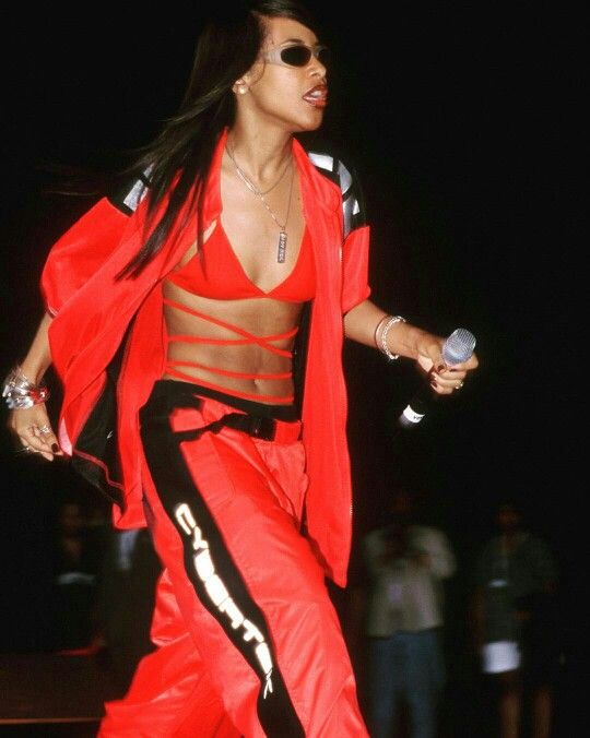 I FIND THIS OUTFIT, TO BE VERY INTERESTING, BECAUSE NOT ONLY, IS IT A TOMBOY LOOK. BUT A’ALIYAH’ANA’DAHARA’NAHKA, ADDS A CROPPED BRA, WRAP-AROUND, DETAIL TOP, REALLY GIVE YOU A, I CAN BE CUTE, AND MIXED, WITH THE GRUNGINESS, OF THE SWEATSUIT, AND THE FEMININESS OF THE BRA TOP. SO I DECIDED, TO RECREATE THIS LOOK, I PAIRED BARBIE-PINK, NATURAL, CURLY HALO HAIR, WITH ETSY EVEANDALEXDESIGNS, TURQUOISE, VINTAGE, ACRYLIC EARRINGS, PAIRED WITH BARBIE-PINK, GLOSSY LIPSTICK. THAT I PAIRED, WITH LACOSTE, PINK COLOR-BLOCK, CROPPED JOGGER JACKET, PAIRED OPEN, WITH A BLUE TANK, CROP TOP. THAT I PAIRED, WITH ISSEY MIYAKI, TURQUOISE, PLEATED PANTS, WITH PINK STRIPED HARAJUKU SOCKS, WORN KNEE LENGTH, OVER THE PANTS, PAIRED WITH COLORBLOCK, PLATFORM SNEAKERS. FOR THE REST, OF THE ACCESSORIES, AND THE JEWELRY, I PAIRED HOT BARBIE-PINK NAILS, WITH ETSY HOOKANDKNOBDESIGN, TURQUOISE, VINTAGE, CHUNKY BRACELETS, WORN ON ONE HAND. AND ON THE OTHER HAND, I PAIRED ETSY GYPSYGALAXYJEWELRY, TURQUOISE BOHO CUFF BRACELET, PAIRED WITH STONESNSHELLS, TURQUOISE BEAD, STONE STACK BRACELETS, TO FINISH, THE LOOK OFF. MY FAVORITE AALIYAH RECREATION, THUS FAR.