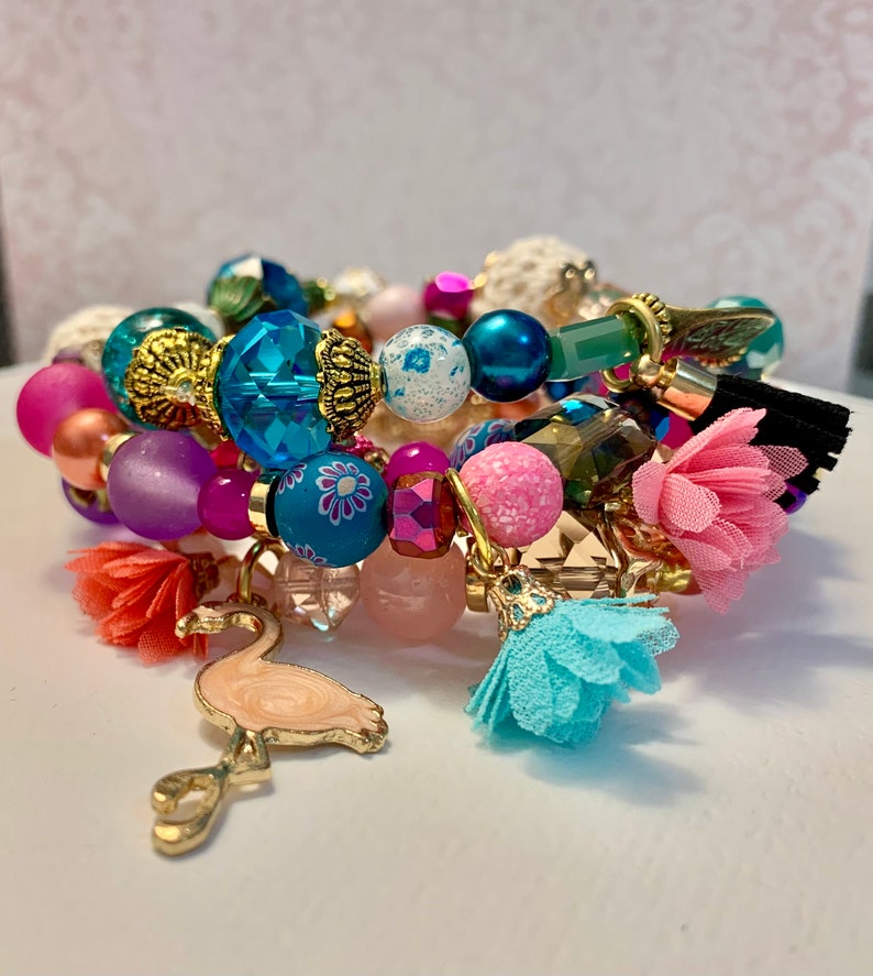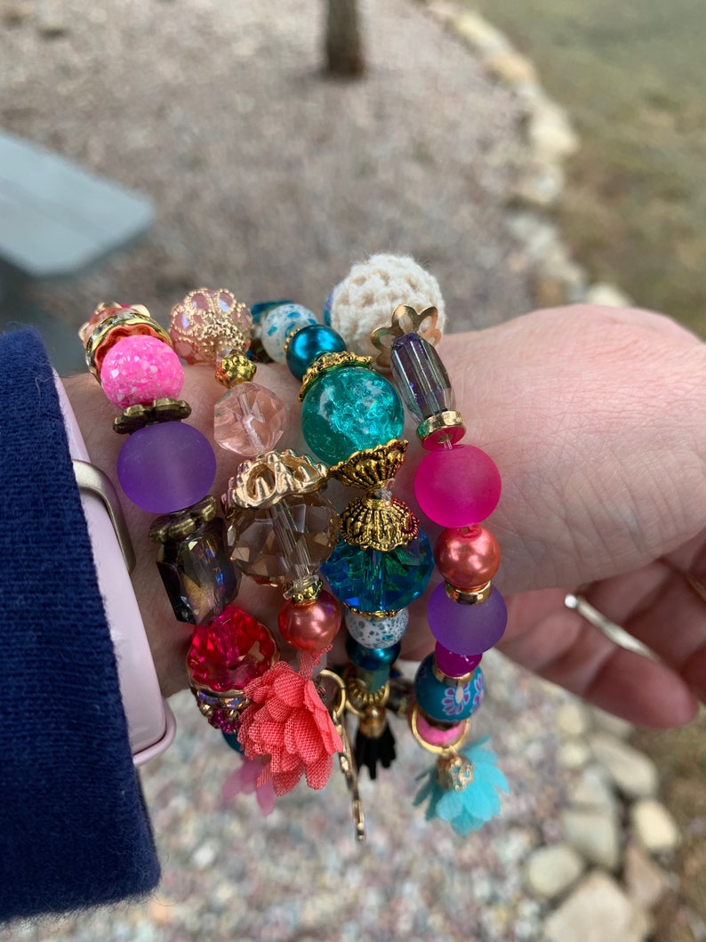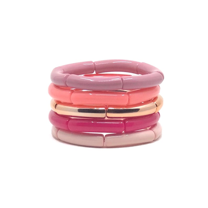 SO HERE WE GO. I PAIRED A BROWN, PRINT BANDANA, WITH BLACK, GLOSSY, STRAIGHT, NATURAL HAIR, BRIGHT BARBIE-PINK LIPSTICK, ETSY CASTOFFSNCURIOSITIES, GOLD AND MAGENTA, CHANDELIER EARRINGS, WITH A SAMSOE NATUFARBEN, OVERSIZED BUTTON DOWN JACKET. THAT I PAIRED OPEN, WITH A CULT GAIA, KNIT BRA CROP TOP, PAIRED WITH AMIRI, CREAM BAGGIE SWEATPANTS, PINK PATENT CROC EFFECT BOOTS. FOR THE REST, OF THE ACCESSORIES, AND THE JEWELRY, I PAIRED HOT BARBIE-PINK LIPSTICK, WITH ETSY KRYSTALKATSMOONBEAMS, CHUNKY MULTI-COLOR BOHEMIAN BRACELETS, STACK ON ONE HAND. AND ON THE OTHER HAND, I PAIRED, ETSY KARLICREATIONS, PINK MARBLE-GEMSTONE, BEAD, STACK BRACELETS, WITH ETSY SHOPKATEMERAKI, PINK ACRYLIC BRACELETS STACK.