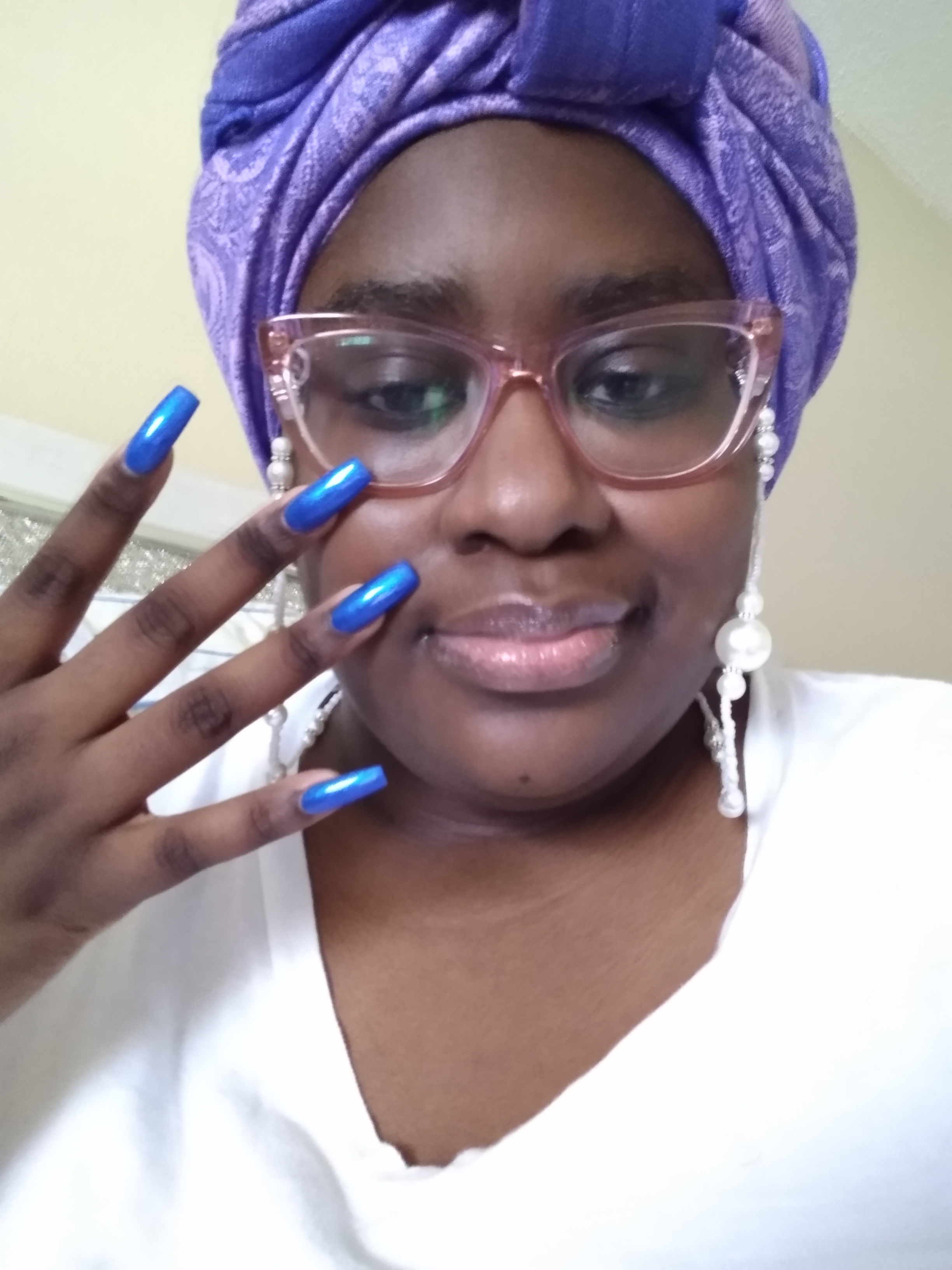 THIS HIJAB, I HAVE ON PICTURED ABOVE, IS OF ROYAL BLUE, AND LAVENDER. PAISLEY PRINT, REVERSIBLE HIJAB PASHMINA. I FEEL LIKE, MATCHING YOUR NAILS, WITH THE COLORS, REALLY HELPS BRING OUT THE DETAIL, AND DESIGN, AND MATERIAL, FABRIC I SHOULD SAY, OF THE HIJAB. AS WELL, AS THE ELEGANCE, OF YOUR NAILS. YOUR NAILS, SIMPLY SHED LIGHT ON, WHATEVER STORY, WHATEVER EMOTION, OF FASHIONABLE, ARTISTIC SELF-EXPRESSION, YOUR TRYING TO TELL, WITH YOUR HIJAB, AND YOUR OUTFIT, AS A WHOLE. I FEEL LIKE THIS HIJAB SAYS: I’M BOLD, AND FIERCE, AND MY NAILS, ARE SAYING: BECAUSE OF THE BOLD HUE, OF MY BLISS, KISSES THE DETAILS, AND PATERNS AND COLORS, OF THE HEADWRAP, WITH A CHRISTENING TOUCH. TARA 101: MATCH YOUR HIJAB, WITH YOUR NAILS, ITS EYECATCHING, ITS CHIC, IT MAKES ANY SIMPLE, CASUAL OUTFIT, REALLY JUST BREATHE LIFE, IN THE IMPORTANCE, OF HOW BEAUTIFUL, THE CULTURE, OF THE HIJAB, ITSELF REALLY IS. AND THE FAITH AND RELIGIOUS MORALS, THAT ENCOMPASS, THE BIGGER PICTURE. THAT BEAUTY IS MODESTY. MODESTY IS POSSIBILITY, TO OPEN THE TRENDS, AND DOORS, TO THE CULTURES OF FASHION, ELEGANTLY, AND EFFORTLESSLY.