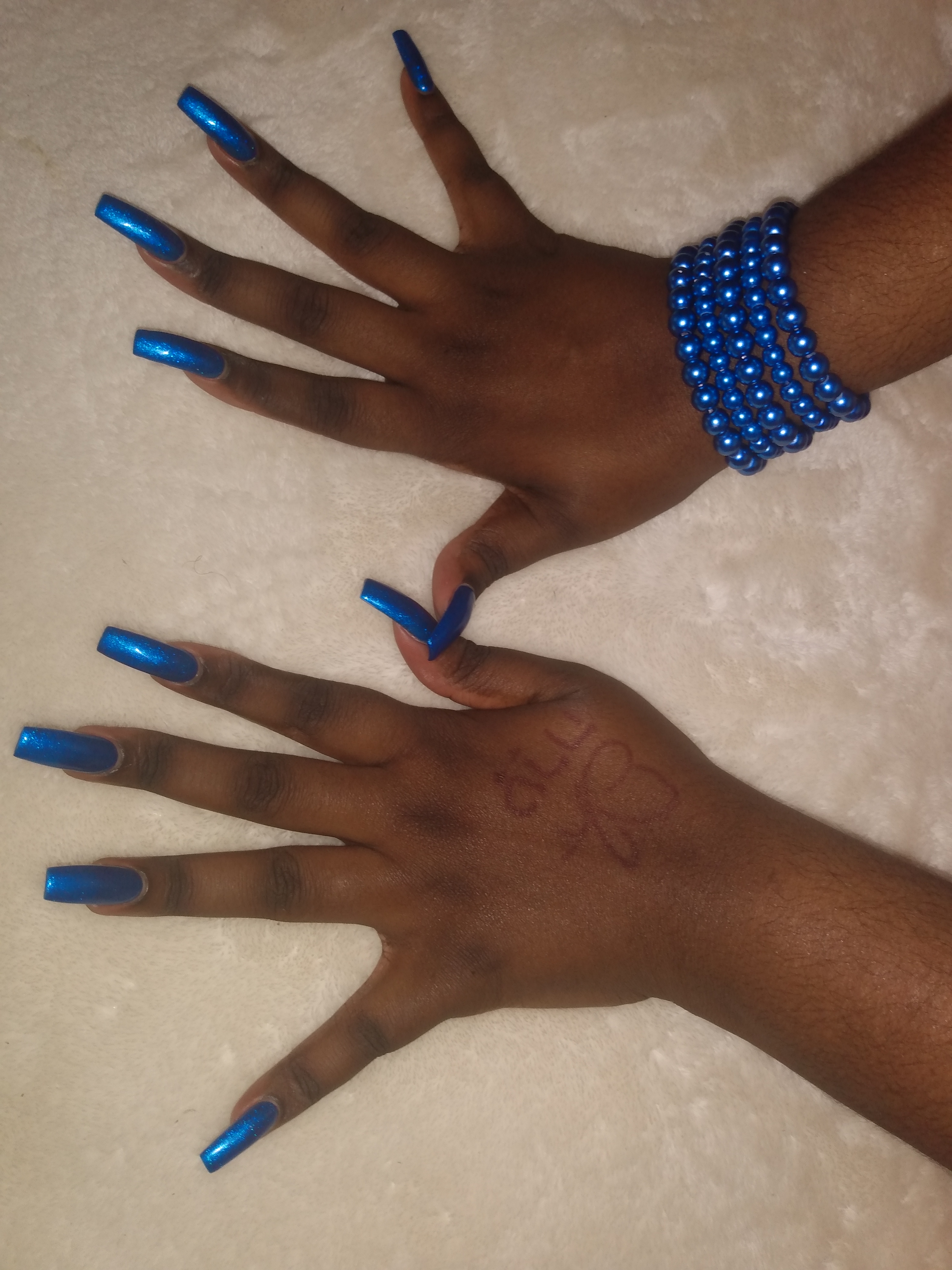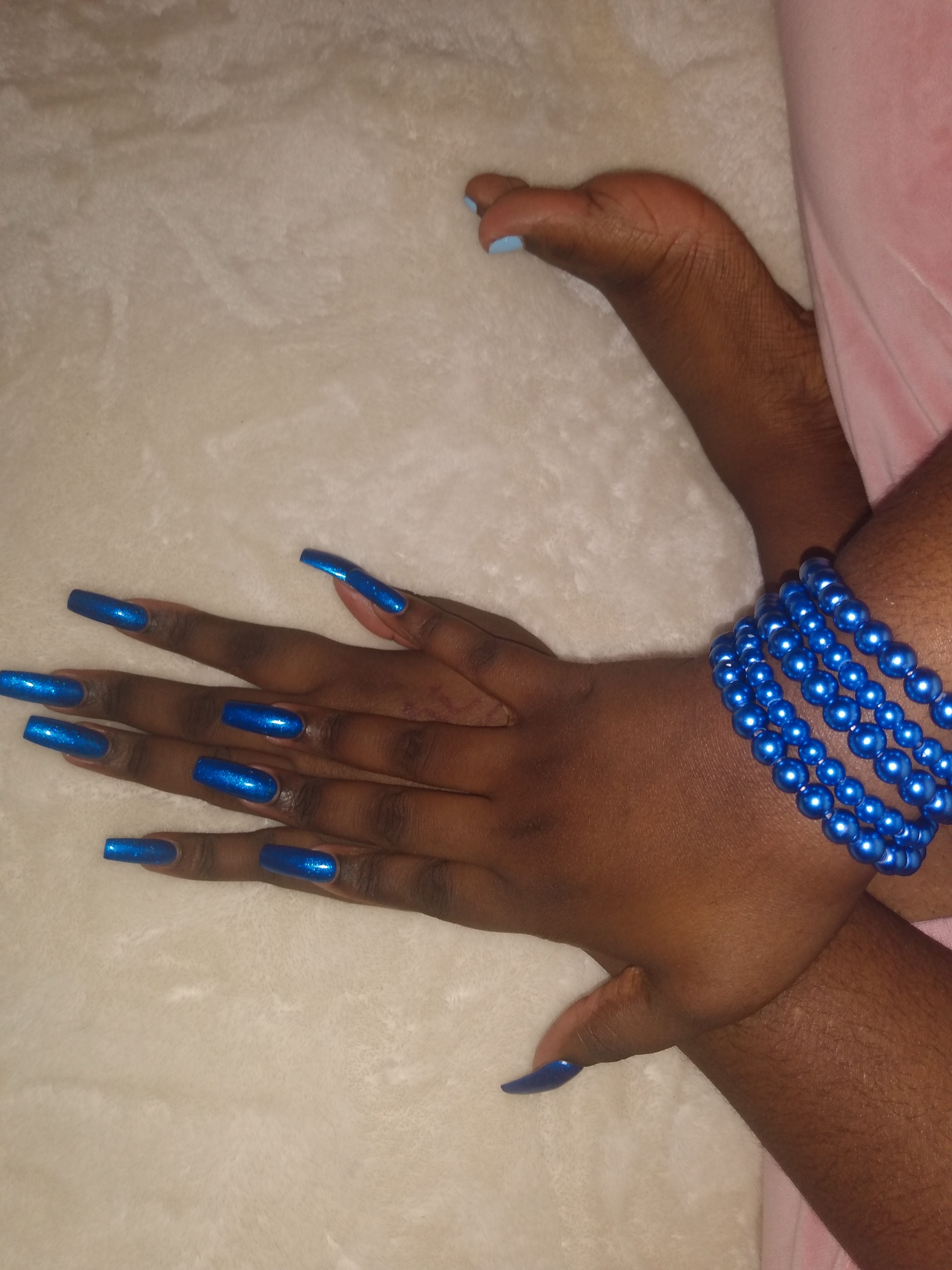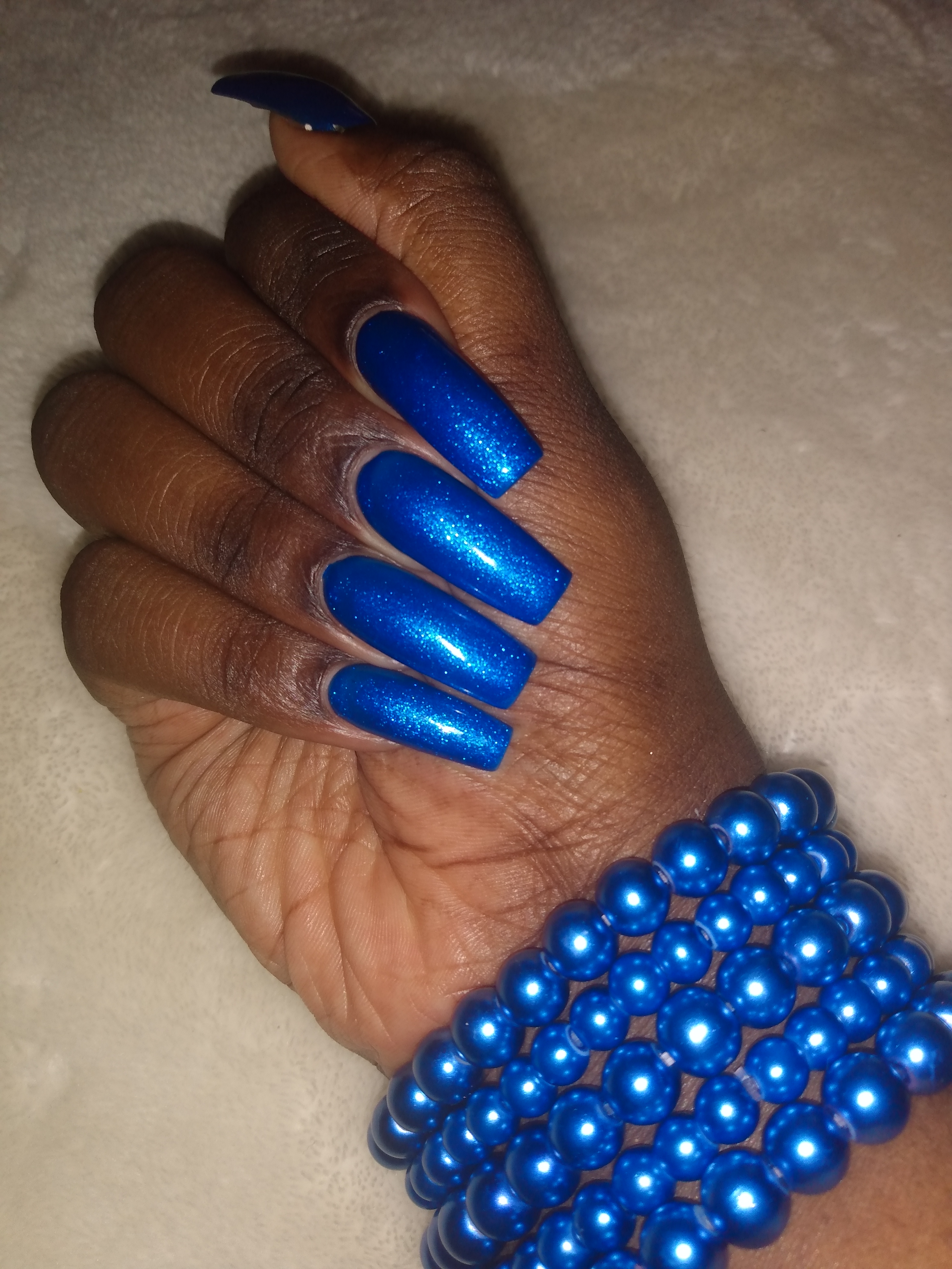 MY BLUE, SHIMMERY SAPPHIRE NAILS, HAVE TO BE MY MOST THOUGHTFUL SUMMER TREND. THE REASON, WHY I SAY THIS, IS THE BRIGHT SAPPHIRE BLUE, CATCHES YOUR ATTENTION, WITH THE LITTLE GLITTERY SHIMMERS IN IT. IT REMINDS ME OF THE LITTLE MERMAID. I THINK SUMMER, IS ALL ABOUT BEING BOLD, STANDING OUT, GETTING TAN FROM THE HEAT, AND SHOWING OF YOUR NAILS AND YOUR FEET. SUMMER REALLY IS ABOUT, TRYING SOOMETHING, THAT REALLY ABOUT GLITTER AND SEQUINS AND SHIMMER, ON ALL THE SUNNY DAYS. AND THE SUN, REALLY BRINGS, THE BLUE SAPPHIRE COLOR TO LIFE. AS IT SHINES DOWN ON IT. NOW, I’M NOT SAYING, YOU HAVE TO GO, WITH SAPPHIRE BLUE. IN FACT, YOU CAN GO, WITH ANY GLITTERY, SHIMMERY NAILPOLISH, FOR A PERFECT MANI PEDI. ALL EYES, WILL BE ON YOUR NAILS, GLISTENING IN THE SUMMER SUN. ANOTHER TREND, TO TRY: TARA 101: HAVE YOU EVER THOUGHT, ABOUT MATCHING YOUR NAILS, WITH JEWELRY? PICTURE ABOVE I MATCHED MY NAILS, WITH THE EXACT SAME COLOR: BLUE SAPPHIRE PEARL BRACELETS, AS MY NAILS. AND BOY, DOES IT REALLY STAND OUT. TO MATCH YOUR NAILS, WITH YOUR JEWELRY, IS THE WHOLE PACKAGE, THAT EMPHASIZES, THAT YOU ARE FASHIONABLY AWARE, OF HOW TO INCORPORATE, DETAIL, HOW TO INFUSE COLOR. SO GIVE, IT A TRY, I PROMISE, YOU WON’T BE DISAPPOINTED.