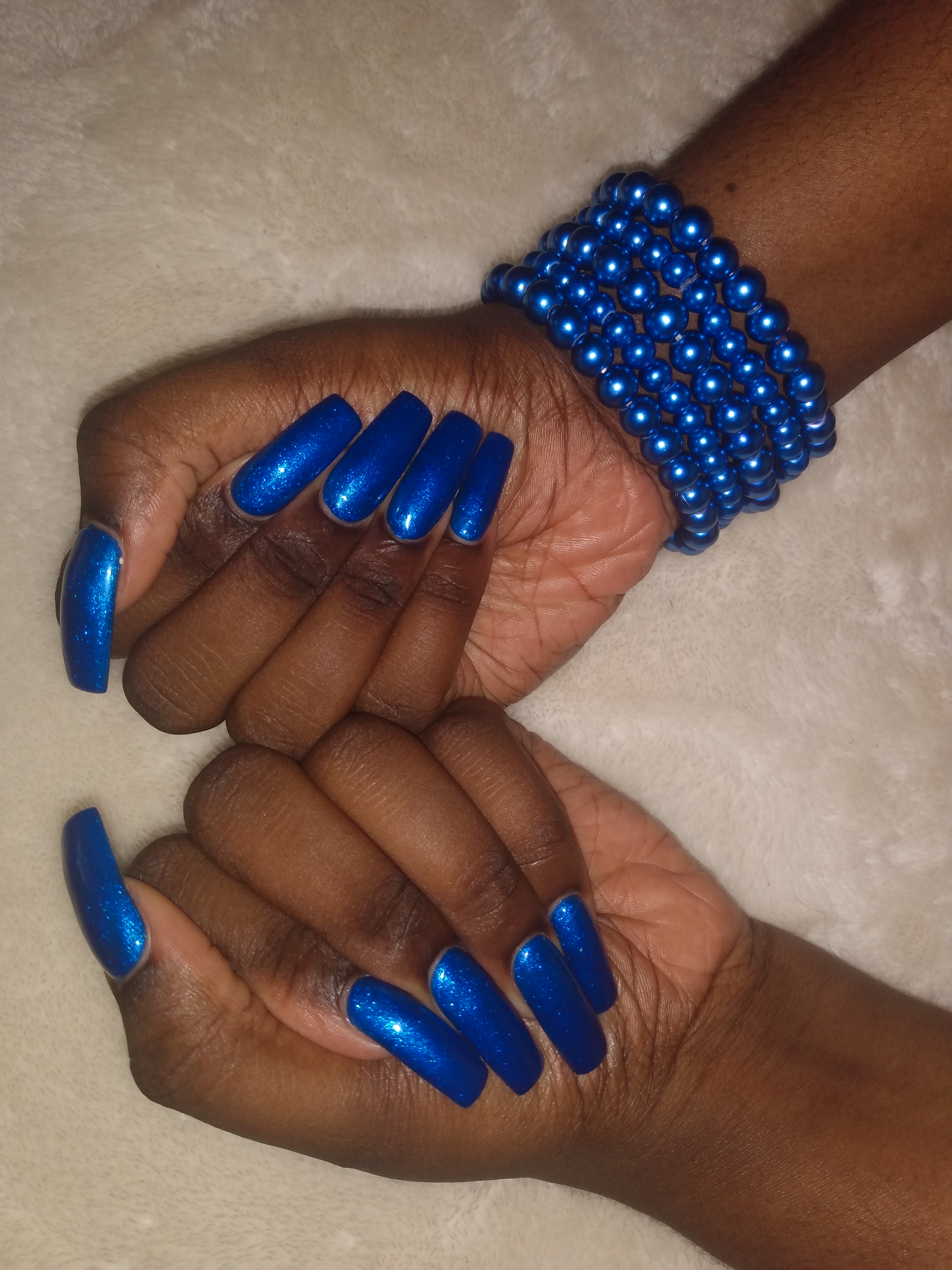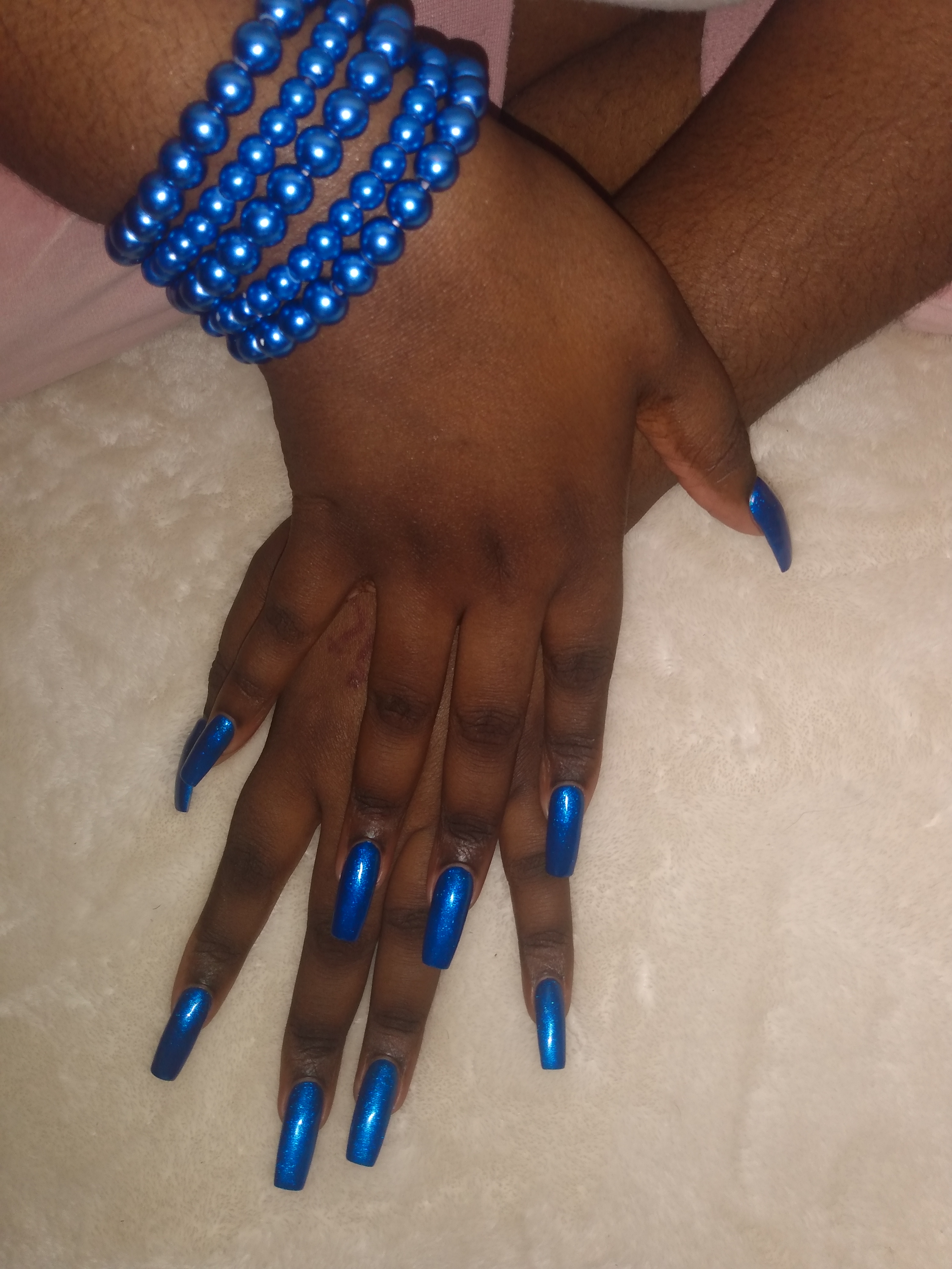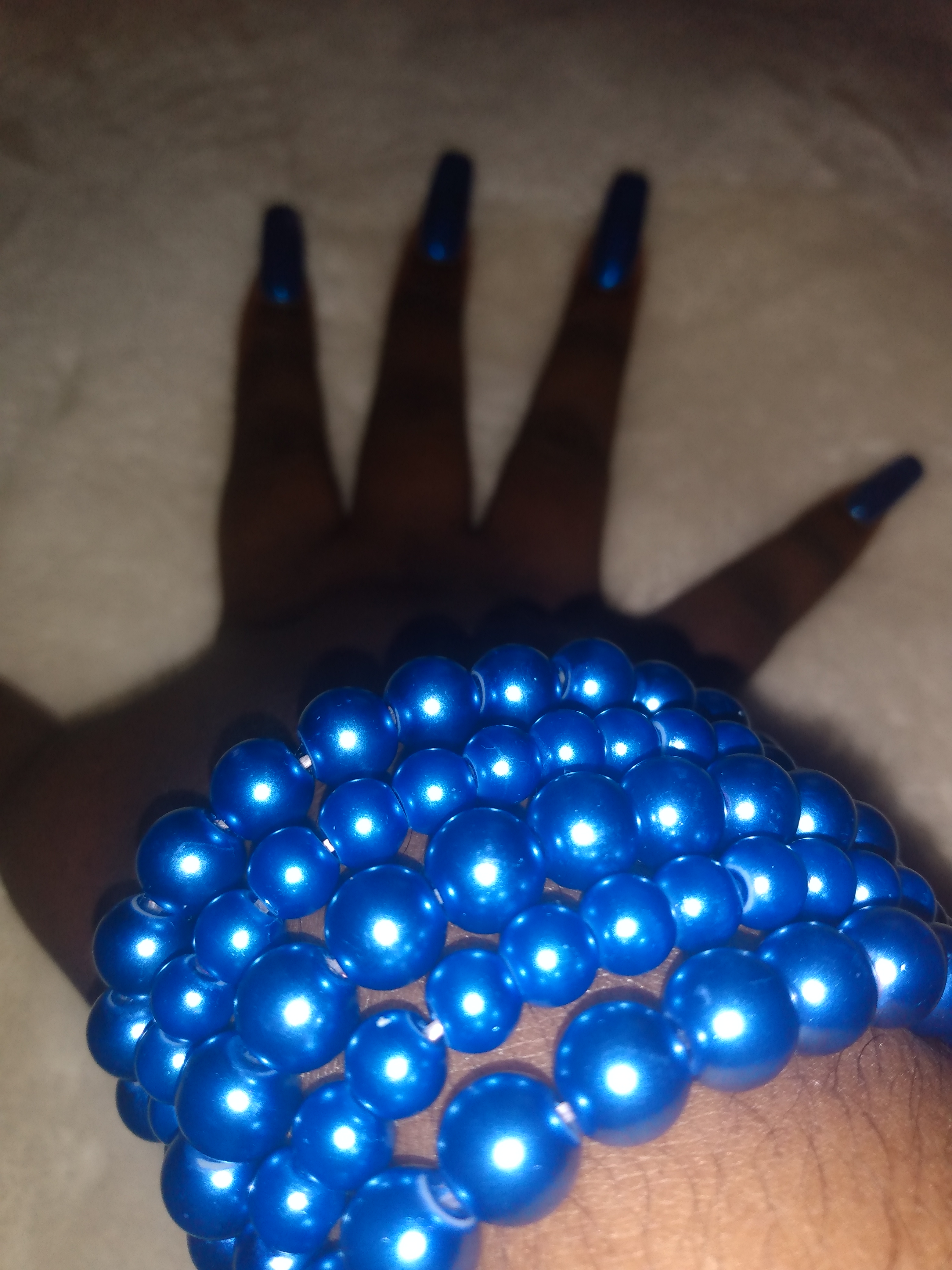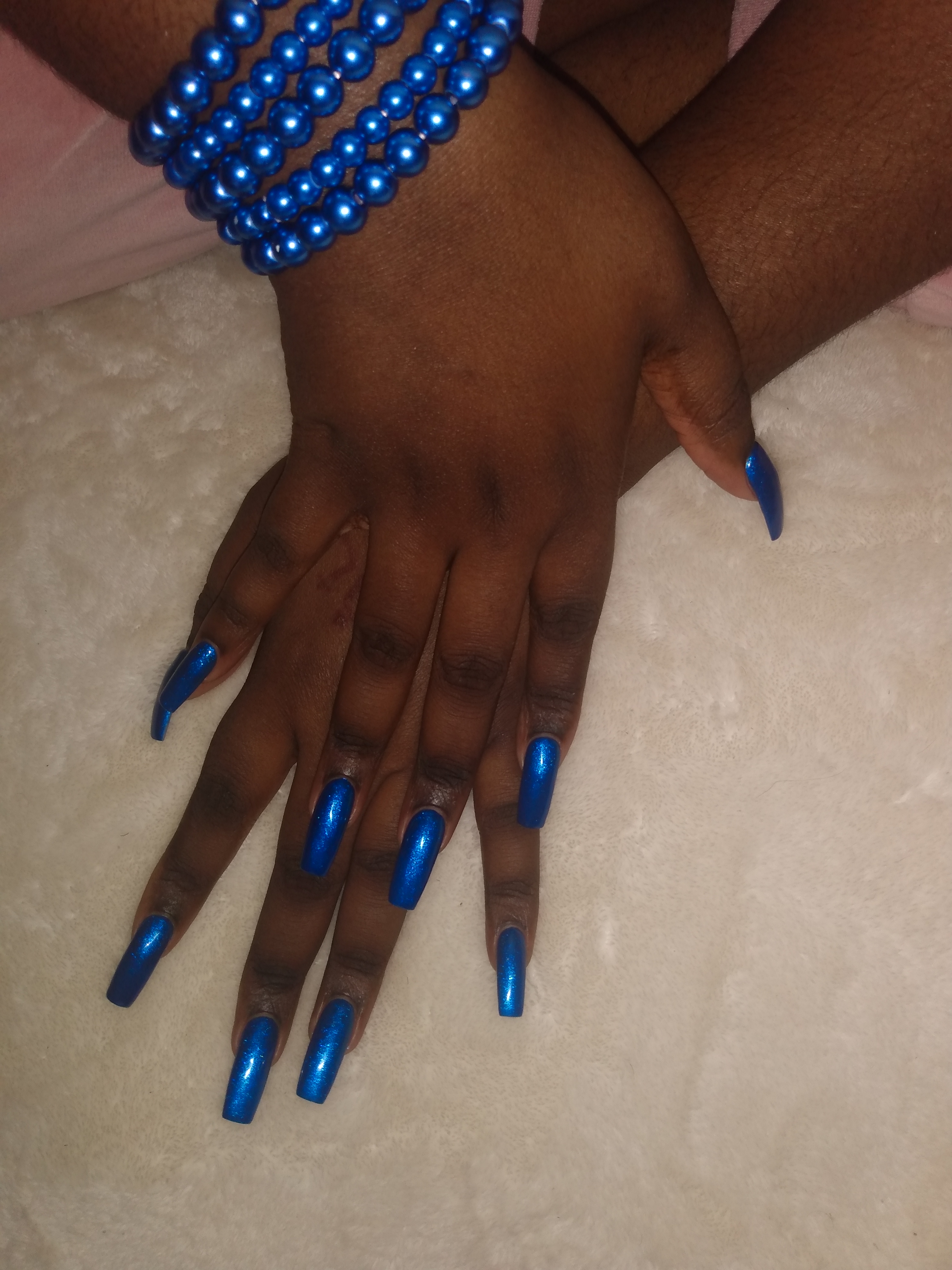 MY BLUE, SHIMMERY SAPPHIRE NAILS, HAVE TO BE MY MOST THOUGHTFUL SUMMER TREND. THE REASON, WHY I SAY THIS, IS THE BRIGHT SAPPHIRE BLUE, CATCHES YOUR ATTENTION, WITH THE LITTLE GLITTERY SHIMMERS IN IT. IT REMINDS ME OF THE LITTLE MERMAID. I THINK SUMMER, IS ALL ABOUT BEING BOLD, STANDING OUT, GETTING TAN FROM THE HEAT, AND SHOWING OF YOUR NAILS AND YOUR FEET. SUMMER REALLY IS ABOUT, TRYING SOOMETHING, THAT REALLY ABOUT GLITTER AND SEQUINS AND SHIMMER, ON ALL THE SUNNY DAYS. AND THE SUN, REALLY BRINGS, THE BLUE SAPPHIRE COLOR TO LIFE. AS IT SHINES DOWN ON IT. NOW, I’M NOT SAYING, YOU HAVE TO GO, WITH SAPPHIRE BLUE. IN FACT, YOU CAN GO, WITH ANY GLITTERY, SHIMMERY NAILPOLISH, FOR A PERFECT MANI PEDI. ALL EYES, WILL BE ON YOUR NAILS, GLISTENING IN THE SUMMER SUN. ANOTHER TREND, TO TRY: TARA 101: HAVE YOU EVER THOUGHT, ABOUT MATCHING YOUR NAILS, WITH JEWELRY? PICTURE ABOVE I MATCHED MY NAILS, WITH THE EXACT SAME COLOR: BLUE SAPPHIRE PEARL BRACELETS, AS MY NAILS. AND BOY, DOES IT REALLY STAND OUT. TO MATCH YOUR NAILS, WITH YOUR JEWELRY, IS THE WHOLE PACKAGE, THAT EMPHASIZES, THAT YOU ARE FASHIONABLY AWARE, OF HOW TO INCORPORATE, DETAIL, HOW TO INFUSE COLOR. SO GIVE, IT A TRY, I PROMISE, YOU WON’T BE DISAPPOINTED.