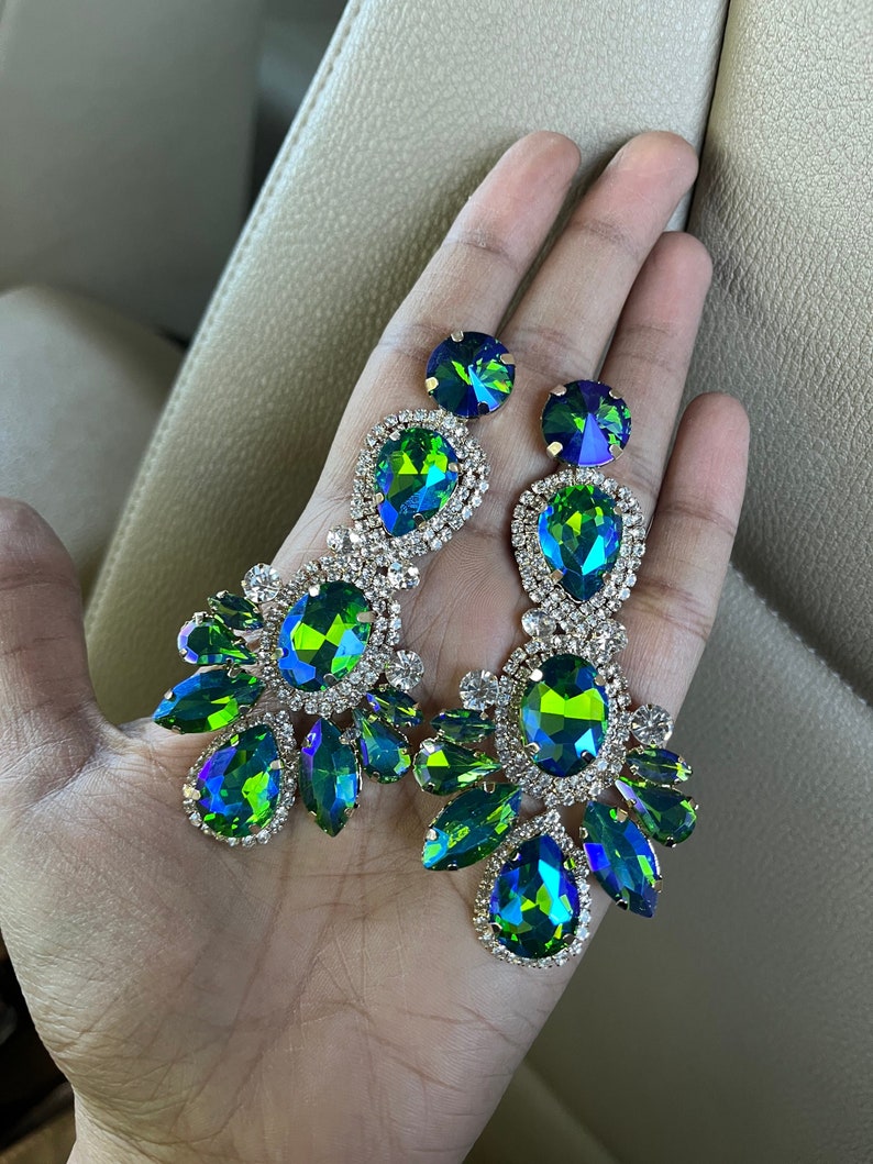 I RECREATED THIS LOOK, I PAIRED ETSY SUBRINASHOP, BLUE AND GREEN, CRYSTAL CHANDELIER EARRINGS, WITH AN ORANGE GAUGE 81, ORANGE MINI DRESS, WITH A GREEN BELT, THAT I PAIRED, WITH TEAL PEACOCK TIGHTS, AND ZEBRA-PRINT, THIGH-HIGH BOOTS, AND A PATENT MINT-GREEN HANDBAG. FOR THE REST, OF THE ACCESSORIES, I PAIRED MY MERMAID MINT GREEN SHIMMERY NAILS, WITH ETSY TRENDYBOHOJEWELRY, PRACOCK BLUE CRYSTAL, AND BEAD STACK BRACELETS, ON ONE HAND. AND ON THE OTHER HAND, I PAIRED ETSY BOHOBEACHYBRACELETS, TEAL BLUE, GEMSTONE STACKED BRACELETS, ON THE OTHER HAND.