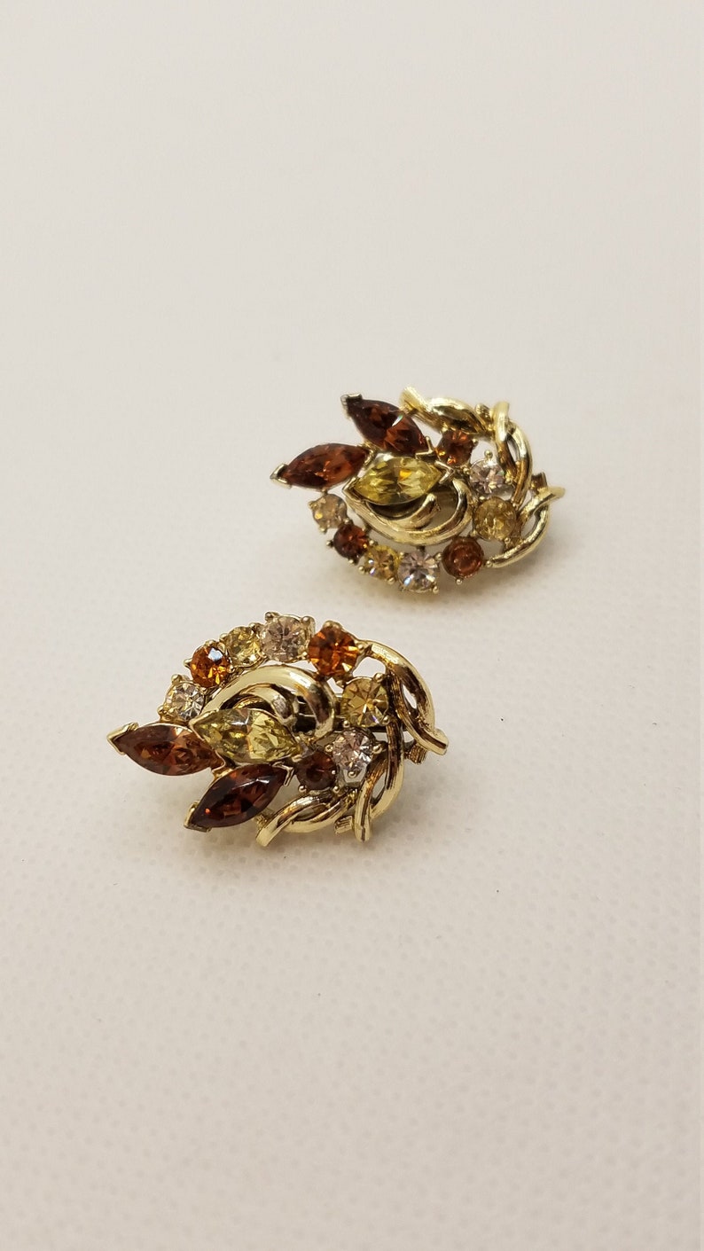 I PAIRED ETSY SIFTEDANDREFINED, BROWN CRYSTAL EARRINGS, WITH A BOOHOO, PINK FLORAL KIMONO, THAT WILL BE WORN, OPEN WITH A RAILS, BLUE SILK PINSTRIPE SHIRT, PAIRED UNDERNEATH A BARBIE PINK TIED STRAPS CROPTOP, WITH A BROWN EMBELLISHED BELT, AROUND THE SHIRT AND TOP, THAT I PAIRED, WITH ALBERTO BIANA, WHITE, RED FLORAL PRINT SILK PANTS, PINK STOCKINGS, AND FUCHSIA PINK PATENT PUMPS.