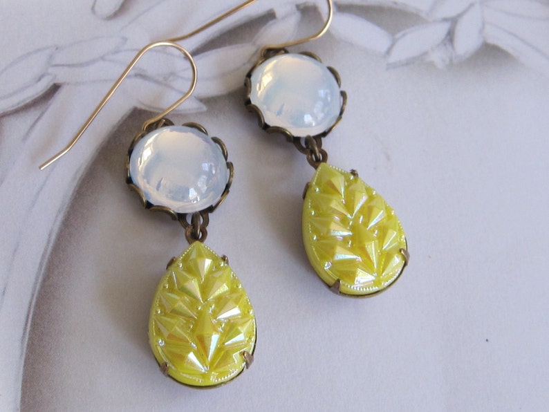 I PAIRED ETSY MICHAELINAROSE, LEMON YELLOW IRIDESCENT EARRINGS, WITH A BALENCIAGA, RED POLKA DOT BOW BLOUSE, UNDERNEATH A SLEEVELESS RED POLKA DOT DRESS. THAT I PAIRED, WITH RED TIGHTS, AND WHITE AND BLACK, COLORBLOCK MARY-JANE PLATFORM HEELS. FOR THE REST, OF THE ACCESSORIES, AND THE JEWELRY, I PAIRED AKRIS LIMONCELLO YELLOW PRINT SCARF, THAT WILL BE TIED, AROUND THE HANDLE, OF A WHITE MINI HANDBAG. FOR THE JEWERLY, TO GO WITH EARRINGS, I PAIRED ON ONE HAND, AN ETSY WAISTEDGEMS, TWO YELLOW CHUNKY STONE BRACELETS. MY FINAL PIECE, OF JEWELRY, I PAIRED ETSY KOMALCRYSTALS, DARK YELLOW BEAD BRACELETS STACK, PAIRED ON THE OTHER HAND.