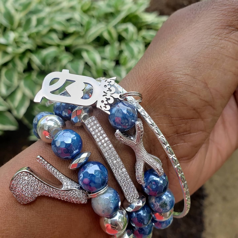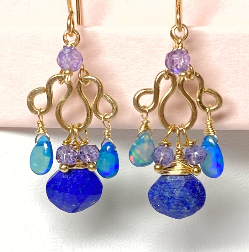 I PAIRED, ETSY DOOLITTLEJEWELRY, BLUE OPAL GEMSTONE CHANDELIER EARRINGS, THAT I PAIRED, WITH A LONG LAVENDER PURPLE BLAZER, PAIRED OPEN OVER A LAVENDER PURPLE POLKA DOT DRESS. THAT I PAIRED, A LAVENDER-BLUE, PATENT WAIST BELT, AROUND THE DRESS, WITH BLUE INDIGO TIGHTS, AND LAVENDER PATENT PUMPS. FOR THE ACCESSORIES I STYLED THE OUTFIT, WITH A LAVENDER BLUE BEAD EMBELLISHED FEATHER MINI HANDBAG, WITH ETSY BLINGISHBYDAWN, BLUE CRYSTAL, IRIDESCENT, CHARM BRACELETS. THAT WILL BE PAIRED, WITH ETSY HOOKANDKNOBDESIGN, PASTEL BLUE CRYSTAL, GLASS, BEAD, AND STONE BRACELETS STACK. ON THE OTHER HAND, I PAIRED ETSY HOOKANDKNOBDESIGN, BLUE INDIGO, CRYSTAL, BEAD, AND STONE, BRACELETS STACK.
