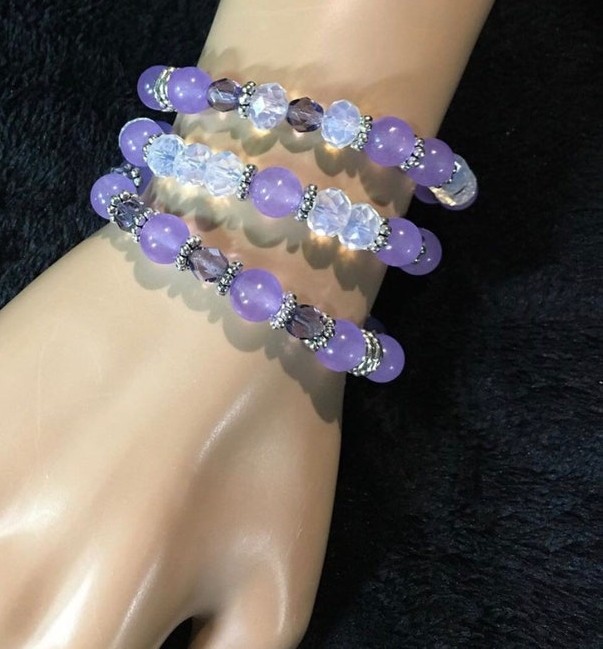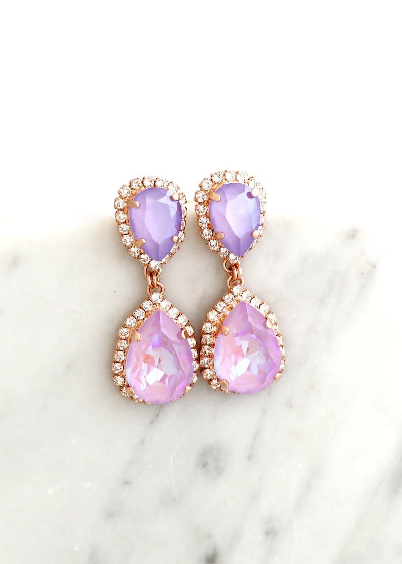 I DECIDED, TO RECREATE THE LOOK, I PAIRED A LILAC-PINK AND BLACK, BRIMMED HAT, WITH ETSY ILONITI, LAVENDER, AND LILAC-PURPLE, CHANDELIER DROP EARRINGS, WITH A BARBIE-PINK JACQUARD, BROCADE PUFF SHOULDER JACKET, WITH A LAVENDER BLOUSE, TUCKED INSIDE, A PINK LEATHER SKIRT. I PAIRED, A LAVENDER PURPLE BELT, AROUND THE JACKET, TIED IN A KNOT, WITH A PIECE, OF THE BELT STRAP, STILL PEAKING. I PAIRED THE OUTFIT, WITH LILAC TIGHTS, AND LAVENDER STOCKINGS, FOR THE JEWELRY AND ACCESSORIES, I PAIRED PINK AND BLACK GLOVES, WITH A PURPLE CRYSTAL CLUTCH. I PAIRED ETSY JEWELRYBYJILLSDESIGN, PURPLE BEAD STACKED BRACELETS.