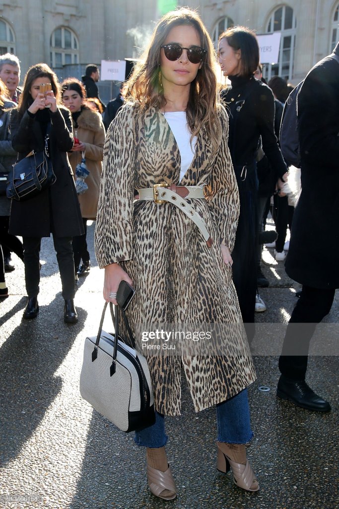 THIS IS ONE, OF MY MANY FAVORITE LOOKS, FROM STYLE INFLUENCER, MIROSLAVA DUMA, LET’S GET INTO, WHAT SHE IS WEARING. MIROSLAVA DUMA, PAIRED A LEOPARD COAT, WITH A WHITE TOP UNDERNEATH, AND A BROWN BELT, TIED AROUND THE COAT. THAT SHE PAIRED, WITH DENIM JEANS, BROWN SOCKS, AND BROWN, PATENT LEATHER MULES. SHE ACCESSORIZED, THE LOOK, WITH HER BLACK, AND BEIGE HANDBAG. I DECIDED, TO RECREATE THIS LEOPARD COAT, BELTED LOOK. WHILE STILL MAKING, IT MY OWN, BUT PAYING HOMAGE, TO THE ICONIC FASHIONISTA, MIROSLAVA DUMA.