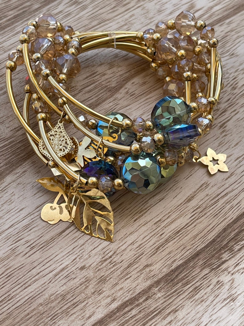 I PAIRED ETSY TWEEACCESSORIES, BLUE SHELL CHANDELIER EARRINGS, THAT I PAIRED WITH LADOUBLEJ, BRONZE METALLIC COAT, WITH PURPLE, AND BLUE EMBROIDERED FLOWERS. THAT I PAIRED, WITH A RED PATENT BELT, DARK NAVY BLUE TIGHTS, AND RED PATENT, ANKLE-STRAP PLATFORM PUMPS. FOR THE REST, OF THE ACCESSORIES, AND JEWELRY, I PAIRED A CHRISTIAN LOUBOUTIN, RED METALLLIC, GLOSSY PATENT CLUTCH. I PAIRED ETSY YERSIGCOLLECTIONS, GOLD-PLATED, BLUE CRYSTAL CHARM BRACELETS, THAT WILL BE THREE OF THEM, ON ONE HAND.