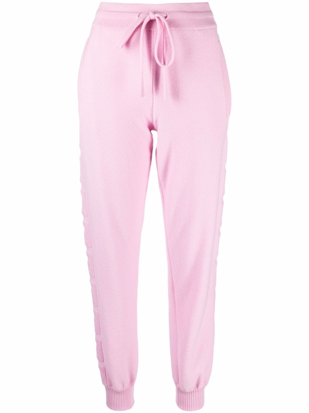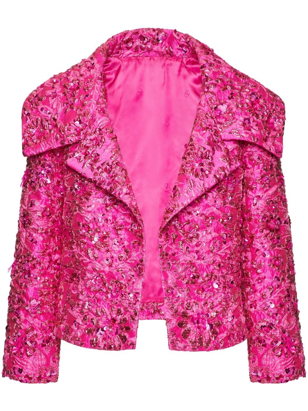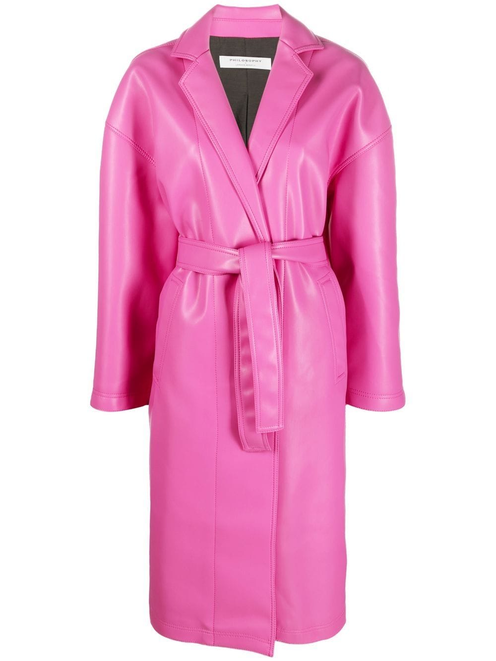 SHIONA TURINI, IS PICTURED, WEARING A CHECK PRINT PINK COAT, OVER A CROPPED PINK BLAZER, AND A PINK EMBROIDERED, CROPPED TOP. THAT SHE PAIRED, WITH ROSE-PINK HIGH-WAISTED TROUSER PANTS, AND SLEEK WHITE ANKLE BOOT PLATFORMS.