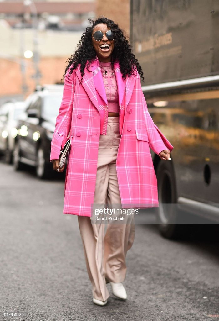 HIONA TURINI, IS ANOTHER FASHION INFLUENCER, AND STYLIST, WHOSE STYLE I ADMIRE. SHE’S NOT AFRAID, TO PLAY AROUND, WITH FUNKY PRINTS, AND ELABORATE DESIGNS, FROM THE TOP FASHION POWERHOUSES. SO I DECIDED, TO RECREATE, SOME OF HER LOOKS, AND GET INSPIRATION. BUT FIRST LET’S DISCUSS, THE CHIC OUTFIT THAT SHIONA TURINI IS PICTURED WEARING. ITS MY FAVORITE BECAUSE IT IS BARBIE-PINK.