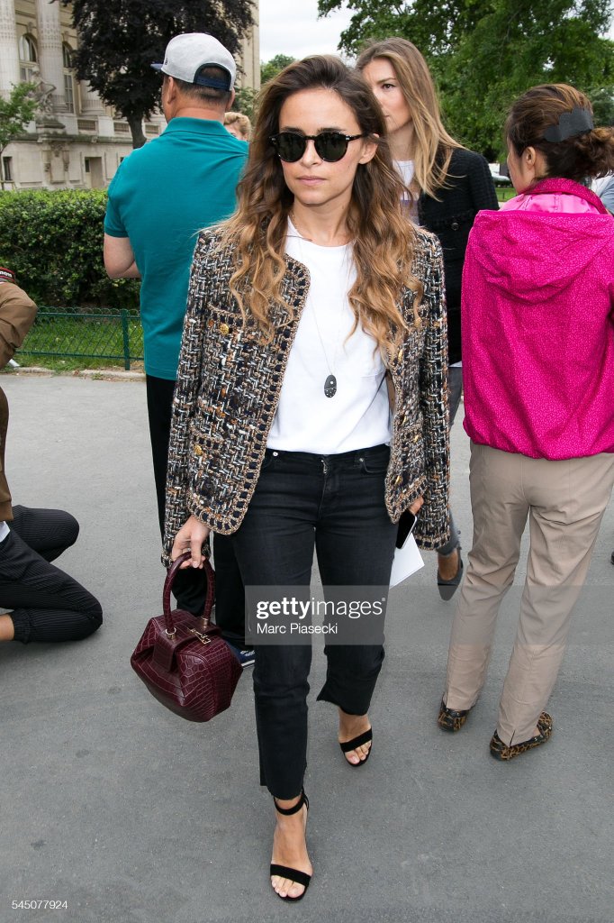 MIROSLAVA DUMA, IS WEARING, A METALLIC TWEED BLAZER, THAT SHE PAIRED, WITH A WHITE TEE, TUCKED IN BLACK DENIM JEANS. THAT SHE PAIRED, WITH BLACK SANDAL HEELS. SHE ACCESSORIZED, HER OUTFIT, WITH BLACK SUNGLASSES, A CHARM BLACK NECKLACE, AND A BURGUNDY FOLDED MINI HANDBAG. MY FVORITE PIECE, OF THIS OUTFIT, WOULD, HAVE TO BE THE BLAZER. I LOVE, LOVE, LOVE, TWEED! BECAUSE ITS SO VERSATILE, SO I DECIDED, TO RECREATE THE LOOK.