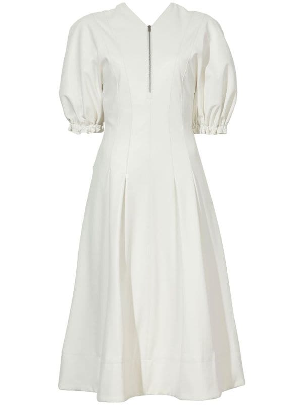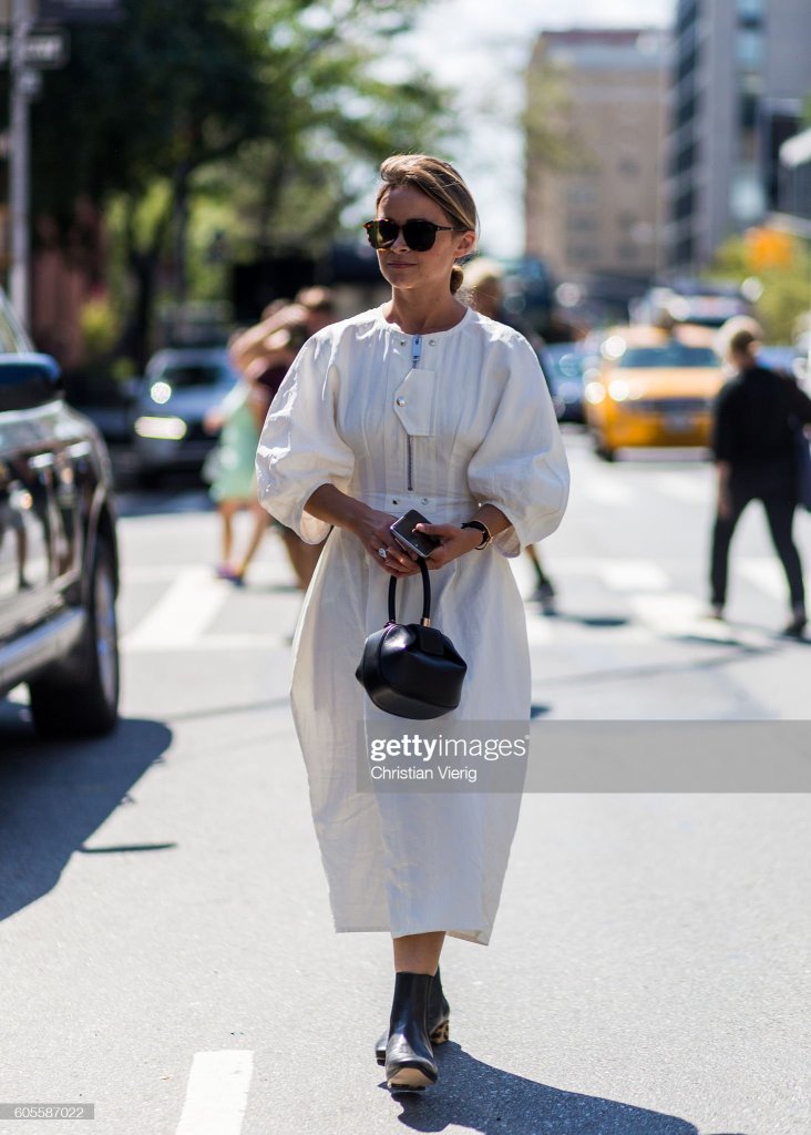 MIROSLAVA DUMA, NEVER FAILS, TO BE ONTOP, OF HER FASHION GAME. I LOVE THE WAY, THIS OUTFIT, IS PAIRED, PICTURED ABOVE. LET’S GET INTO, WHAT SHE IS WEARING. I’M EXCITED, FOR THIS ONE, ESPECIALLY. MIROSLAVA DUMA, PAIRED A WHITE PUFF SLEEVE ZIPPER DRESS, WITH PATENT TORTOISE, HEELED BOOTS, WITH A BLACK STRUCTURAL, FOLDED HANDBAG. FOR THE REST OR THE ACCESSORIES BLACK TORTOISE SUNGLASSES. FOR HER JEWELRY, SHE PAIRED A DAINTY THIN GOLD BRACELET, PAIRED WITH A BLACK BRACELET. MY FAVORITE PIECE, OF THIS OUTFIT, WOULD HAVE TO BE THE DRESS. BUT I CAN’T GET OVER, THE CHIC TORTOISE, PLATFORM BOOTS, SHE PAIRED, WITH THE OUTFIT, TO REALLY SET THE DRESS OFF. SO I HAD TO RECREATE THIS OUTFIT.