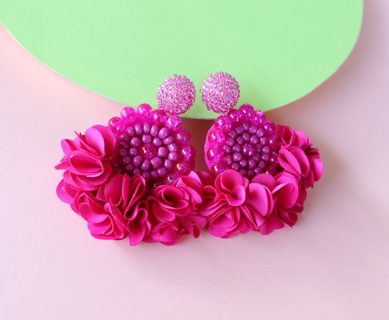 I PAIRED A PINK FEDORA HAT, WITH VERSACE RED RIMMED PINK SUNGLASSES, PAIRED WITH ETSY LUXSTOREDR, PINK BEAD, RUFFLE CHANDELIER EARRINGS, PAIRED WITH A ZAFUL, BLACK CORSET, CROPPED BLOUSE, PAIRED UNDERNEATH, THE ATTICO, HOT-PINK HALTER TOP RUFFLE DRESS, PAIRED WITH BLUE TONED BLACK TIGHTS. AND HOT-PINK EMBELLISHED MULES. FOR THE ACCESSORIES, AND JEWELRY, I PAIRED A FUCHSIA ASSYMETRICAL CLUTCH, WITH AN ETSY DESERTROSEDESIGNS10, FUCHSIA-PINK JEWELED BRACELET.