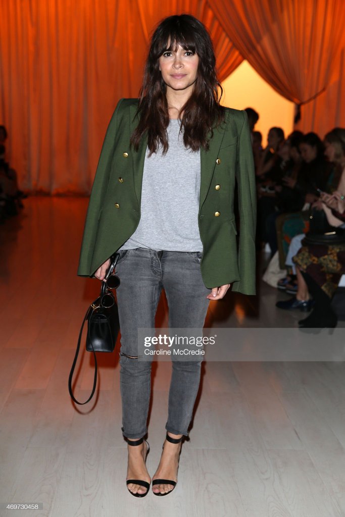 EVERYONE WHO IS INTO FASHION, KNOWS HOW TO PICK OUT, A BALMAIN BLAZER, FROM A MILE AWAY, LIKE SERIOUSLY, YOU SEE THE INFLUENCE, OF THE WAY BALMIAN, DESIGNS THEIR BLAZERS, WITH OTHER FASHION POWERHOUSES. SO WHEN I SEEN, THIS OUTFIT MIROSLAVA DUMA, IS WEARING, I KNEW JUST, WHAT BRAND TO GO WITH, TO RECREATE HER LOOK. LET’S DISCUSS, WHAT MIROSLAVA DUMA, IS WEARING, I’M EXCITED TOO. MIROSLAVA DUMA, IS WEARING A GREEN BLAZER, (EITHER BALMAIN, OR BALMAIN INSPIRED) THAT SHE PAIRED, WITH A GRAY TEE, TUCKED INTO, BLACK DENIM WASHED, SKINNY JEANS, AND BLACK ANKLE-STRAP SANDALS. FOR HER ACCESSORIES, AND JEWELRY, SHE PAIRED A BLACK MINI HANDBAG, AND ROUND BLACK SUNGLASSES.