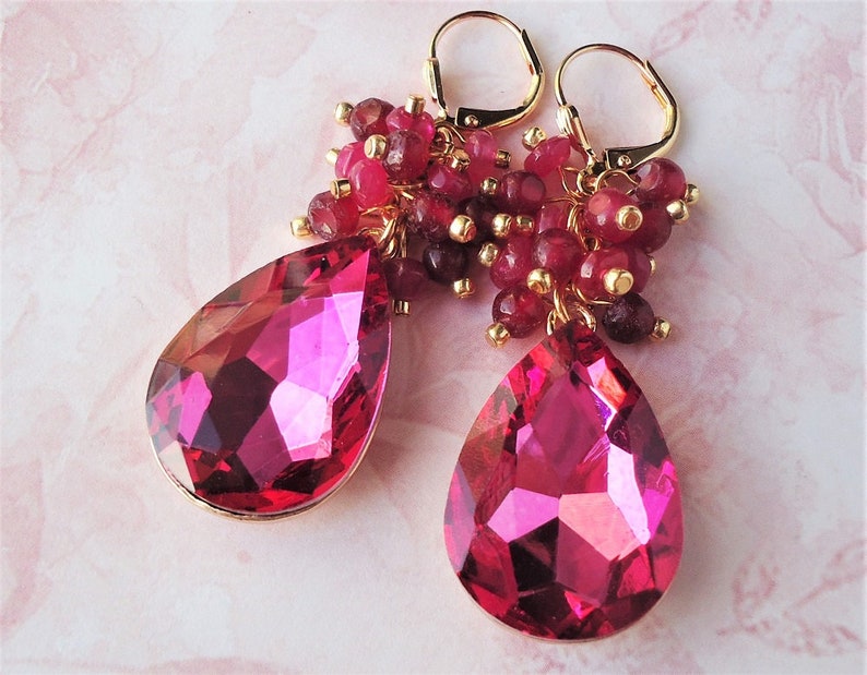 I DECIDED, TO RECREATE THIS LOOK. I PAIRED ETSY GINAJIANGDESIGN, PINK CRYSTAL CLUSTER EARRINGS, WITH AN ETSY POLKADOTDRAWER, PINK CHUNKY BIB NECKLACE, THAT WILL BE LAYERED, WITH AN ETSY OXANAJEWELRYDESIGN, PINK BEAD STATEMENT NECKLACE, THAT I PAIRED UP AGAINST, A VALENTINO, GREEN LACE TOP (TUCKED INTO THE DENIM SHORTS) THAT WILL BE UNDERNEATH, A ZAFUL, MINT GREEN FLORAL TANK CROP TOP, HIGH-WAISTED DISTRESSED DENIM SHORTS. I PAIRED THE OUTFIT WITH SOFT, MINT-BLUE TIGHTS, AND MAGENTA-PINK, SATIN PLATFORM, ANKLE- STRAP PLATFORMS. FOR THE REST, OF THE ACCESSORIES, I PAIRED A PINK METALLIC, CHROME CLUTCH BAG.